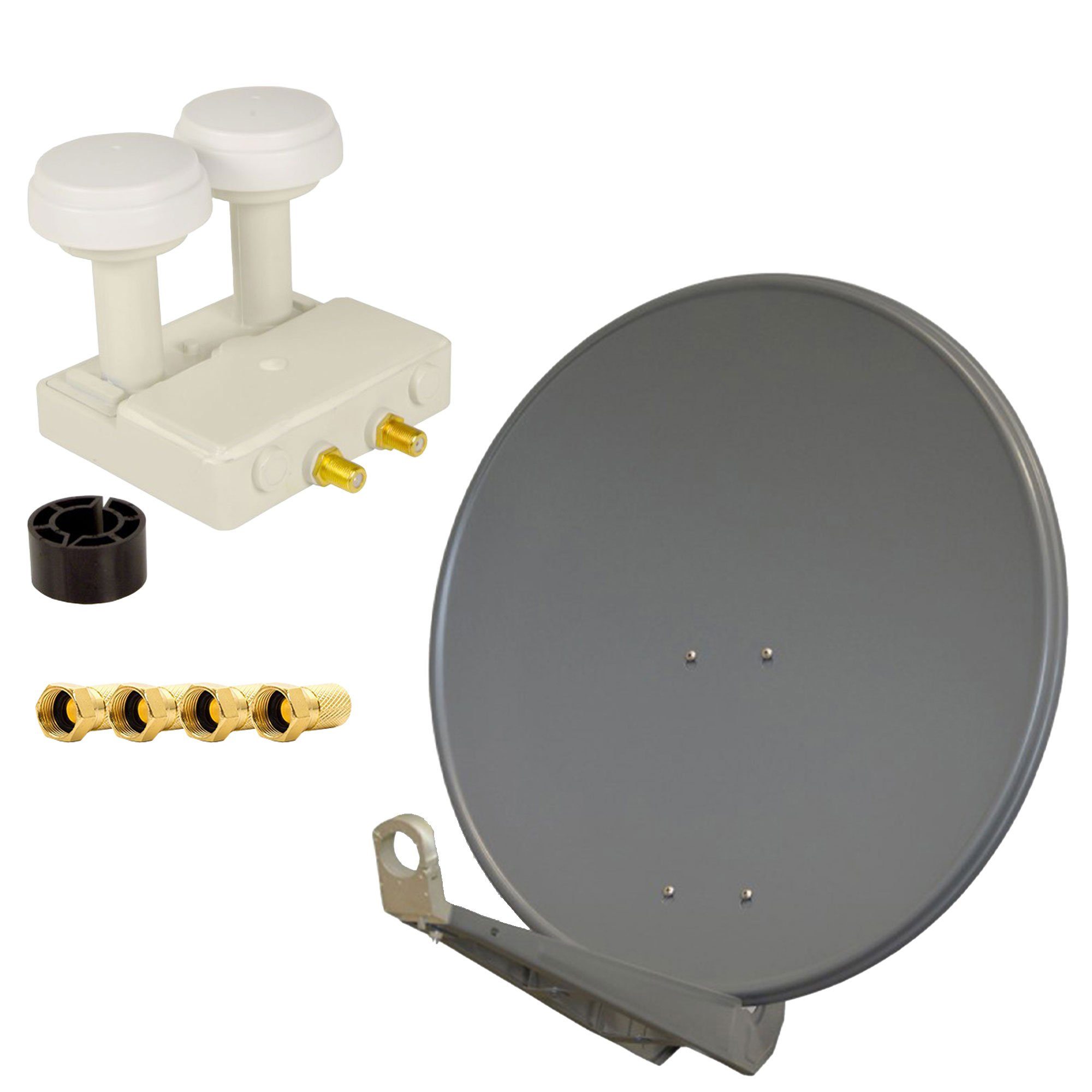 DELUXE80 Alu 80cm SAT Schüssel Anthrazit Monoblock Twin 4x F-Stecker SAT-Antenne