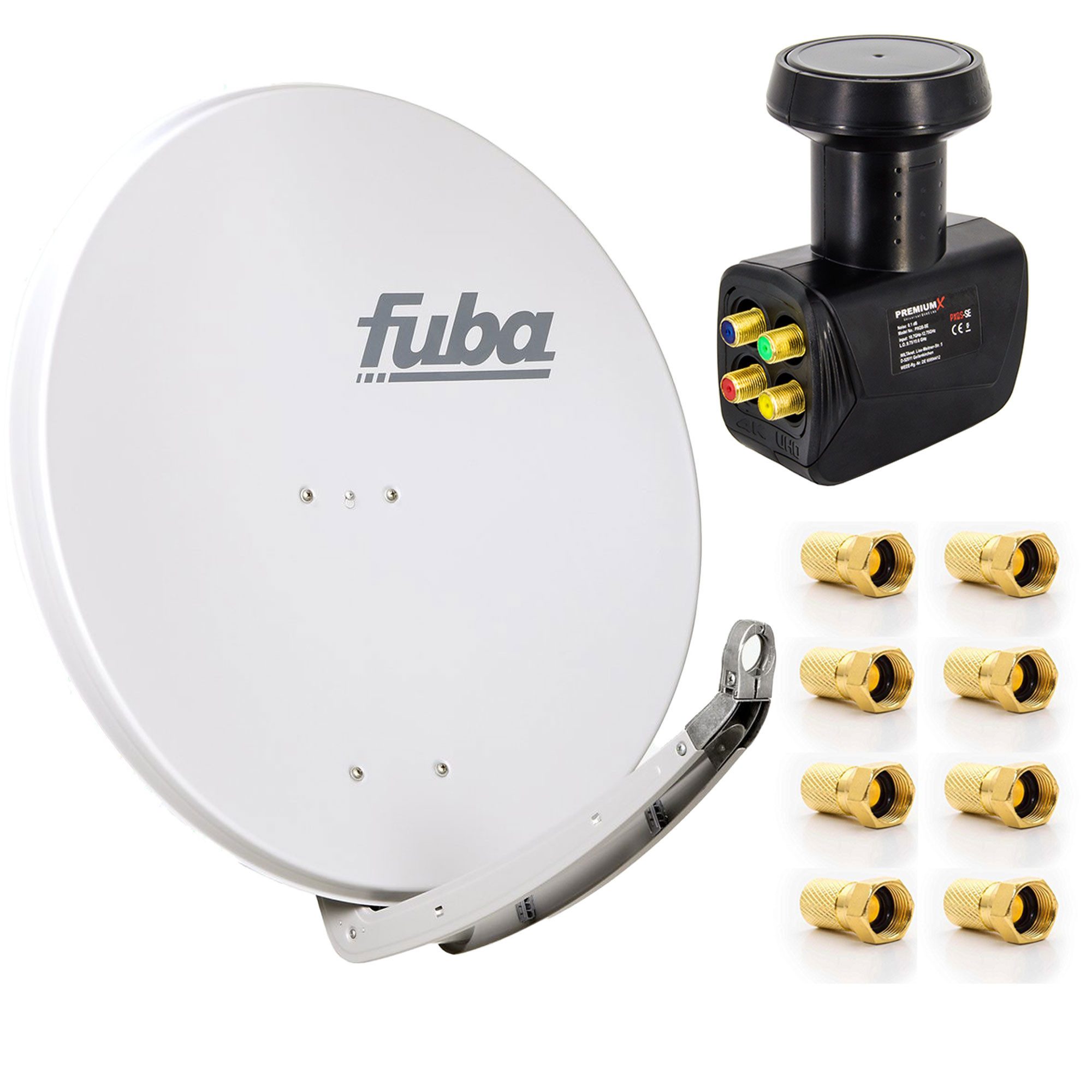 Lieferumfang | 1x Fuba DAA 850 G Grau 85x85cm1x LNB Halter 40mm1x Antennenarm1x Schraubensatz1x LNB Quad 0,1 dB PremiumX8x F- Stecker 7,5mm vergoldet |