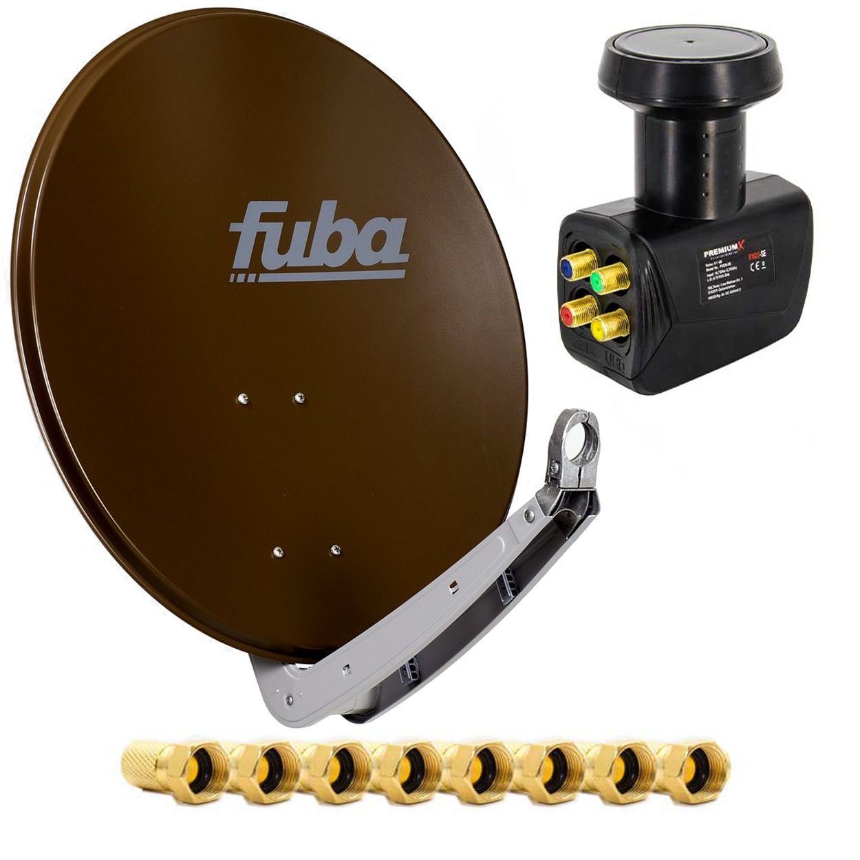 Lieferumfang | 1x Fuba DAA 650 B Satellitenantenne Braun1x PremiumX PXQS-SE Quad LNB Black Edition8x PremiumX F-Stecker mit Dichtring |