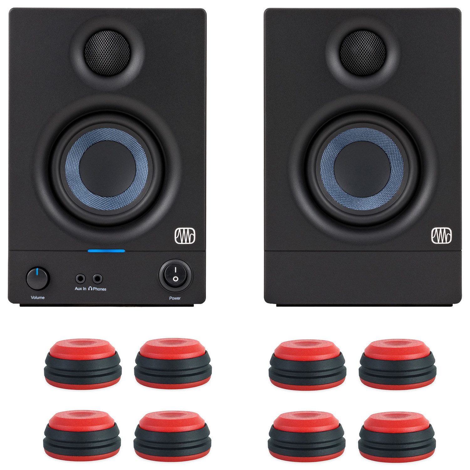 Lieferumfang | 1 Paar Lautsprecher-Boxen - Netzkabel - 8 Stück Boxen-Füße |