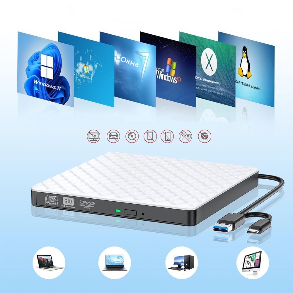 Egal ob Windows 11/10, Mac OS oder Linux, dieses externe CD/DVD-Laufwerk ist perfekt kompatibel. Und nicht nur das: Es funktioniert auch mit verschiedenen Marken und Modellen von Desktops, Laptops und Geräten wie dem Apple MacBook Pro.