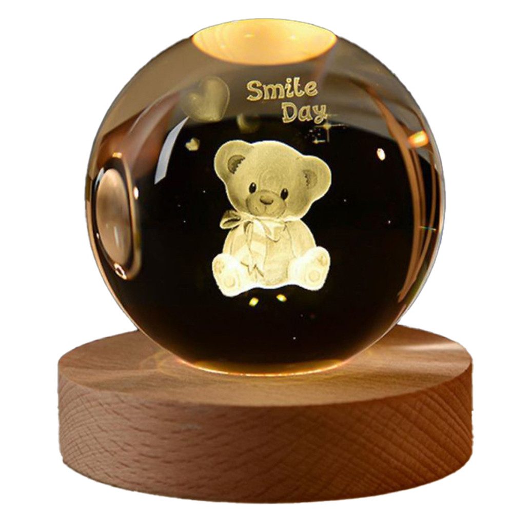 Leuchtmittel | Holzsockel 3D Kristallkugel Teddy Nachtlampe |