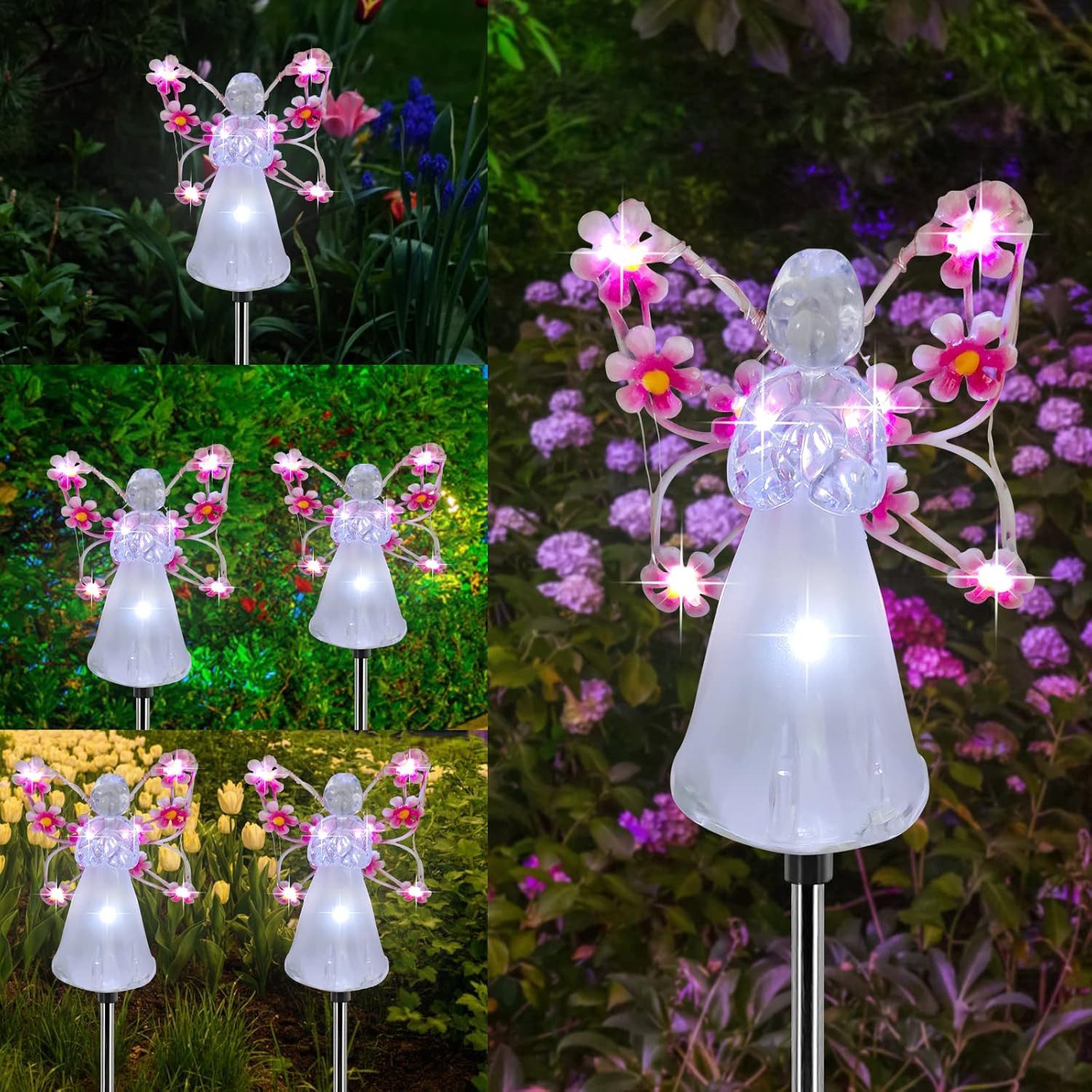 Das Solar-Garten-Engelslicht ist aus transparentem Acryl gefertigt, das kristallklar, oberflächenhart und glänzend ist. Durch den wetterfesten IP65-Schutz ist es regen- und wasserdicht und daher ideal für den dauerhaften Einsatz im Freien bei jeder Jahreszeit. Sie brauchen sich keine Sorgen zu machen, dass es im Regen rostet oder seine Farbe verliert.