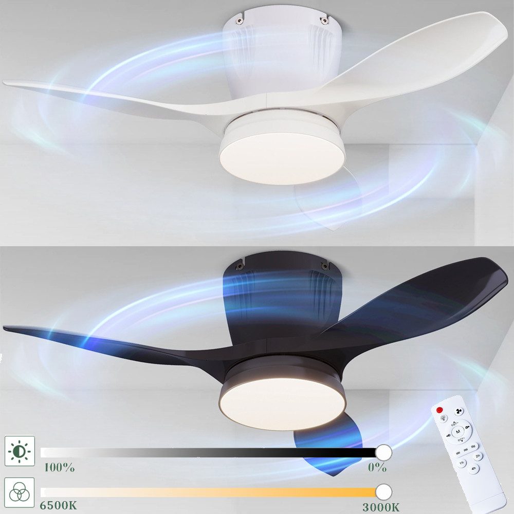 Dieser elegante, weiße Deckenventilator mit Licht bietet smarte Beleuchtungsoptionen. Sie können die Helligkeit dimmen und die Farbtemperatur des Lichts bequem per Fernbedienung anpassen. So schaffen Sie mühelos die gewünschte Raumatmosphäre, von konzentriert und hell bis hin zu gemütlich und warm. Der moderne Deckenventilator mit Licht ist ein vielseitiger Begleiter für nahezu jeden Raum in Ihrem Zuhause.