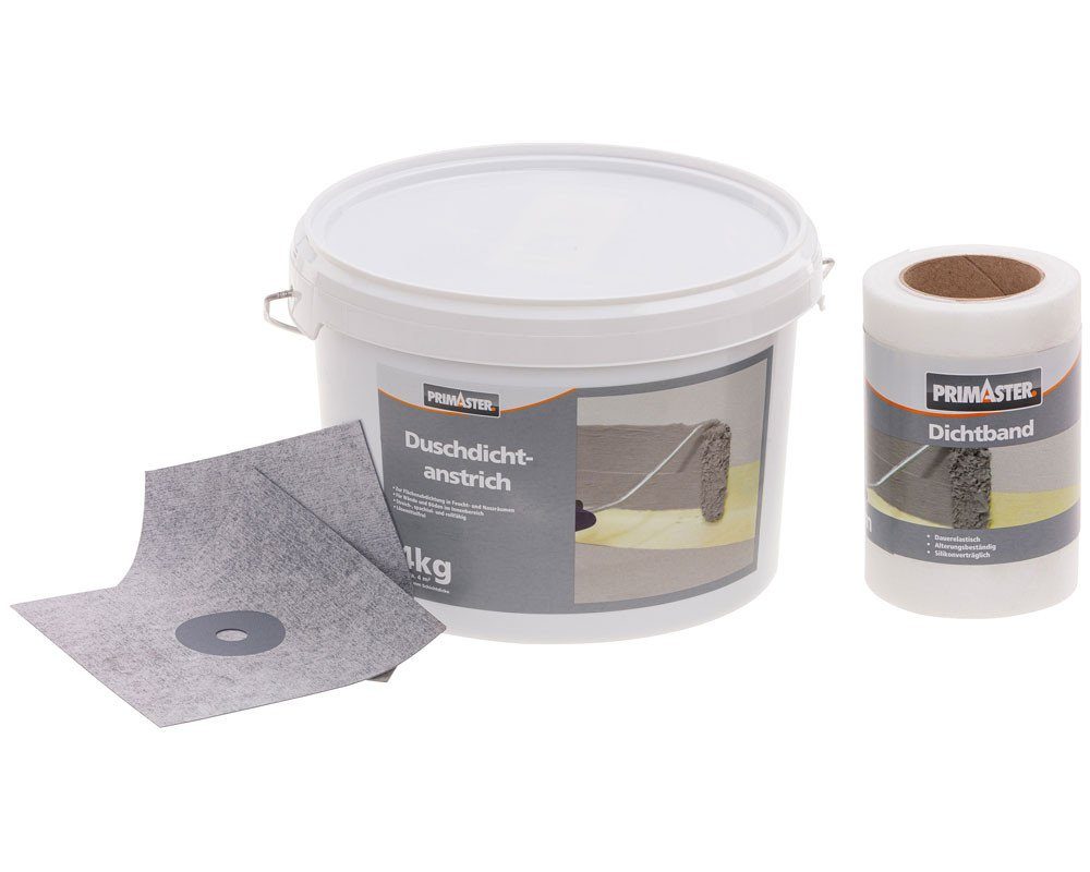 Das Primaster Duschdicht-Set eignet sich ideal zur Flächenabdichtung unter keramischen Belägen in Feucht- und Nassräumen bei privater Nutzung. Es bietet einen effektiven Schutz vor nicht drückendem und nicht stauendem Wasser.Besonders feuchtigkeitsempfindliche Untergründe wie Gipsputz oder Gipskarton werden durch das Duschdicht-Set effektiv vor Feuchtigkeit geschützt. Damit können Schäden durch eindringendes Wasser vermieden werden.Das Set ermöglicht eine einfache und sichere Anwendung und sorgt dafür, dass die keramischen Beläge auch langfristig wasserundurchlässig bleiben. Mit dem Primaster Duschdicht-Set erreichen Sie eine zuverlässige Flächenabdichtung für Ihre Dusche oder andere Feucht- und Nassräume in Ihrem Zuhause.