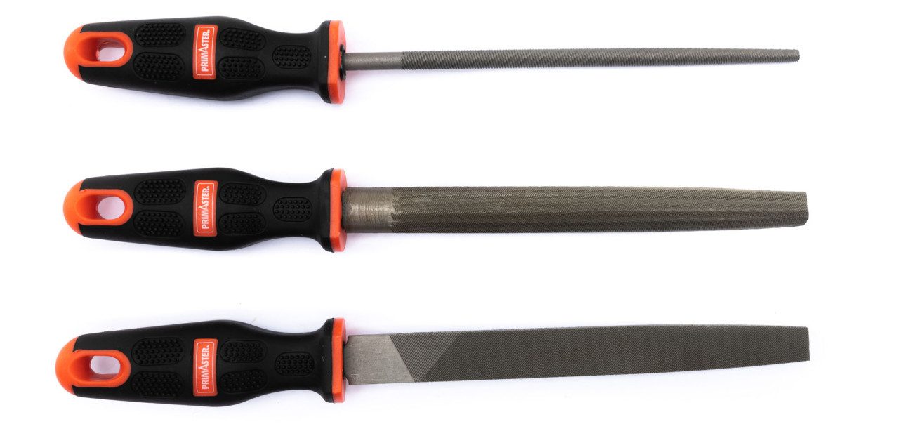 Produktdetails: Flachfeile | Rundfeile | Halbrundfeile | Arbeitsfläche: jeweils 18 cm | mit Kunststoffgriff |