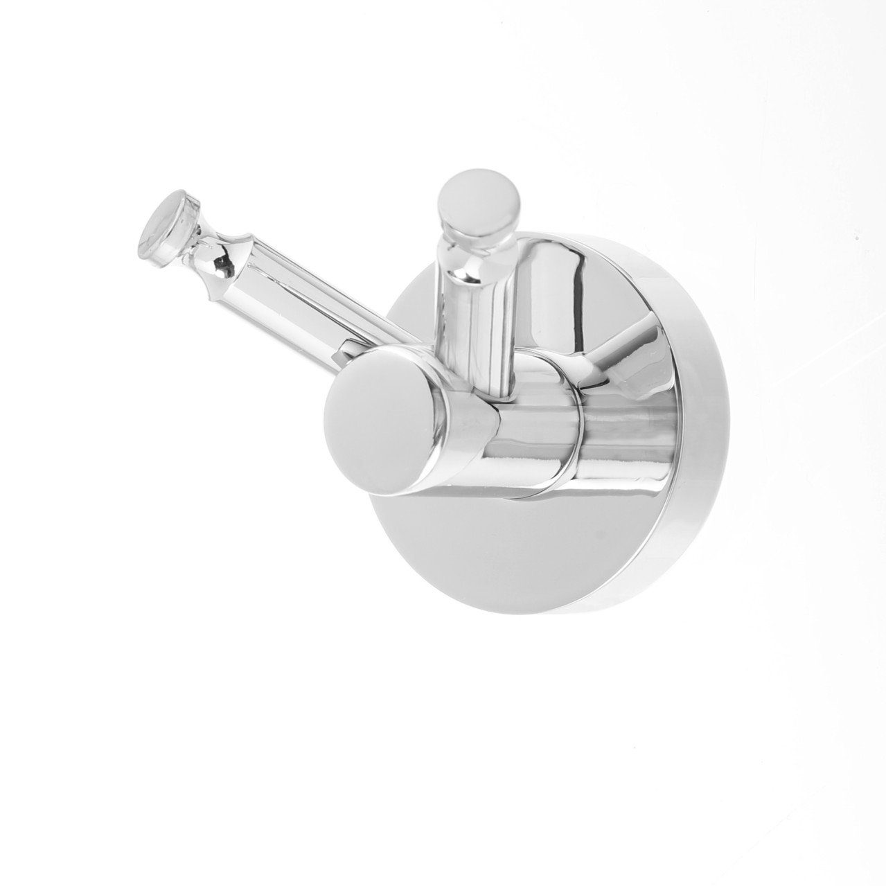 Produktdetails: Material: Edelstahl | Maß: Ø 6 cm | Befestigung: zum Bohren oder Kleben | Hakenanzahl: 2 | Farbe: verchromt | max. Belastbarkeit: 3 kg | weitere Merkmale: nutzbar für z.B. Duschabzieher, Nassrasierer, als doppelter Handtuchhaken, etc. | Lieferumfang: Haken, Befestigungsmaterial (zum Bohren) |