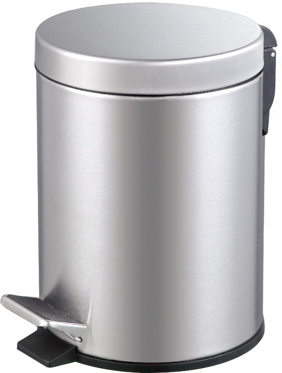 Produktdetails: Maße: 29 x 20,5 x 26,5 cm (H x B x T) | Fassungsvermögen: 5 Liter | Material: Edelstahl matt | Farbe: chrom | Inneneimer aus Kunststoff, schwarz, herausnehmbar | Treteimer mit Soft-Close Funktion | Anti-Fingerprint |