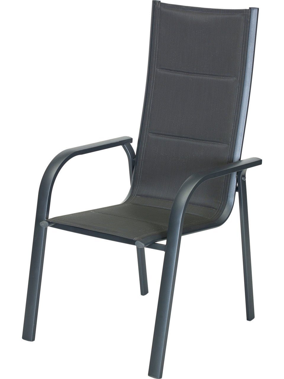 Produktdetails: Stapelbar | Hochwertiger Aluminiumrahmen mit Kunststoff-Bezug | Maße: 59,5 x 65 x 110 cm (B x T x H) | Sitzhöhe: ca. 43 cm | Farbe: anthrazit | Material Sitz- und Rückenfläche: 60 % Polyester, 40 % Polyurethan (innen), 70 % Polychlorid, 30 % Polyester (außen) | Anzahl der Sitzplätze: 1 | Max. Belastbarkeit: 110 kg | Witterungsbeständig, schnelltrocknend | Im Winter bitte trocken lagern |