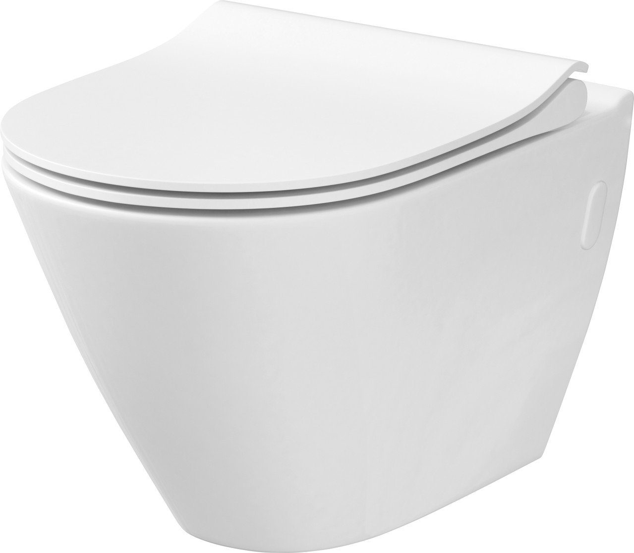 Produktdetails: Maße: 50,5 x 36 x 37 cm (T x B x H) | spülrandlos - einfache Reinigung | Spülmenge 3-6 Liter | waagerechter Abgang | Tiefspüler | Material: Sanitärkeramik | Farbe: weiß | ovale Form | einfache Wandmontage | verdeckte Befestigung | Gewicht : ca. 27 kg | pflegeleicht | WC-Sitz mit Absenkautomatik, auf Knopfdruck abnehmbar | Lieferumfang: WC, Befestigungsmaterial, WC-Sitz aus Kunststoff |