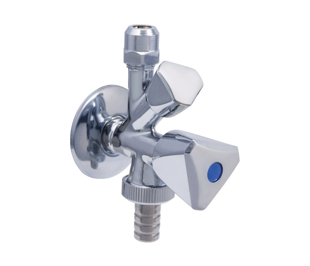 Produktdetails: Material: Messing | selbstdichtend | geeignet für Kaltwasser | Größe: 1/2" x 3/4" | Farbe: verchromt | mit Rücklaufschutz, beide Anschlussmöglichkeiten separat absperrbar, mit Длинаnausgleichsverschraubung und Rosette |