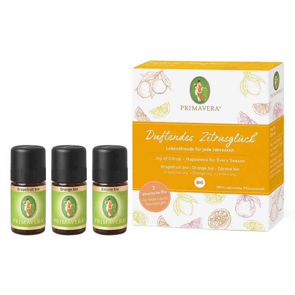 Drei der beliebtesten ätherischen Zitrusöle in einem Set: Grapefruit, Orange und Zitrone. Die spritzigen Lieblinge für selbstgemachte Gute Laune Mischungen. Das ideale Set zum Verschenken und selbst behalten. Jetzt im modernen, duftenden Design und zum Vorteilspreis.