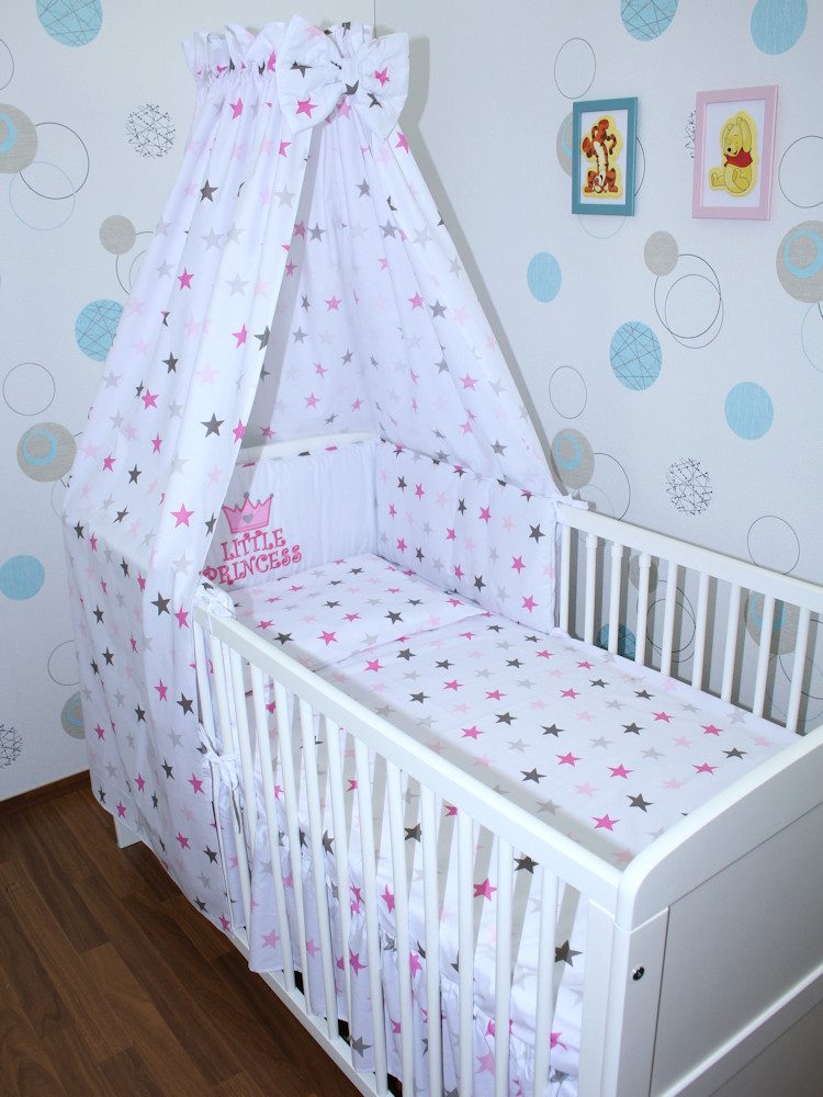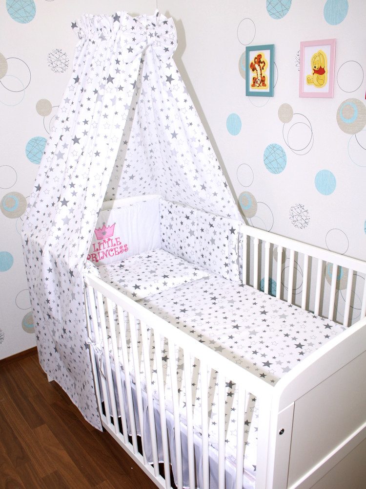 Baby Bettset mit Vollstoffhimmel und Applikation Princess für 70x140 Bett