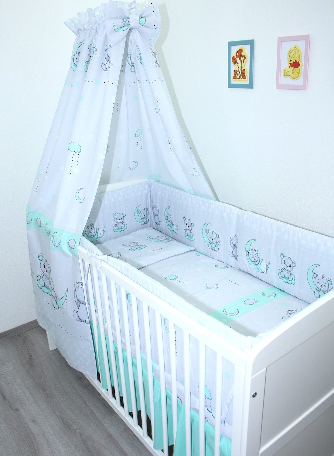 6 teiliges Baby Bettset mit Vollstoff Himmel und rundum 420 cm Nestchen für 70x140 Bett