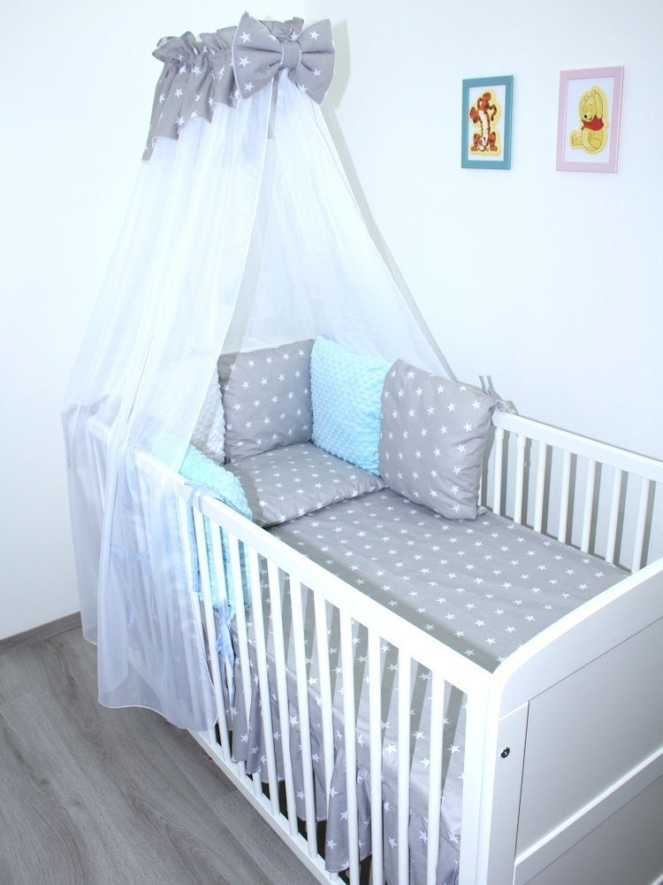 Ein Bettset für 60x120 und 70 x 140 cm Betten. Im Set enthalten sind:1.Deckenbezug (100 x 135) 2.Kissenbezug (40 x 60) 3.Nestchen (6 x Kissen ca 35 x 35) 4.Himmel - Chiffon 5.Schleife 6.Himmelstange Kissen können Sie in beliebiger Reihenfolge befestigen Die Bettwäsche-Bezüge sind aus 100% Baumwolle Mit Reißverschluss. Nestchen: 3 x Kissen-Oberstoff Baumwolle, 3 x Kissen Oberstoff Minky Kissen sind mit tausenden Faserbällchen aus silikonisierter Polyesterhohlfaser gefüllt, sehr leicht und bauschig die hinsichtlich der Leichtheit, Weiche und Elastizität der natürlichen Daune gleichkommen Zum Lieferumfang gehören nur die oben genannten Teile. Bett, Falbel und andere Artikel gehören nicht zur Auktion. Das Bild des Bettes dient nur dazu, das Aussehen der Ausstattung zu zeigen Stellen Sie sicher, dass die Kissen des Nestchens fest miteinander verbunden sind, um ein Verrutschen zu verhindern. Das Nestchen darf niemals lose im Bett liegen. Befestigen Sie die Kissen sicher an den Gitterstäben des Bettes. Überprüfen Sie regelmäßig, ob die Befestigung stabil ist. Das Nestchen sollte nicht in der Nähe des Gesichts des Babys positioniert sein.