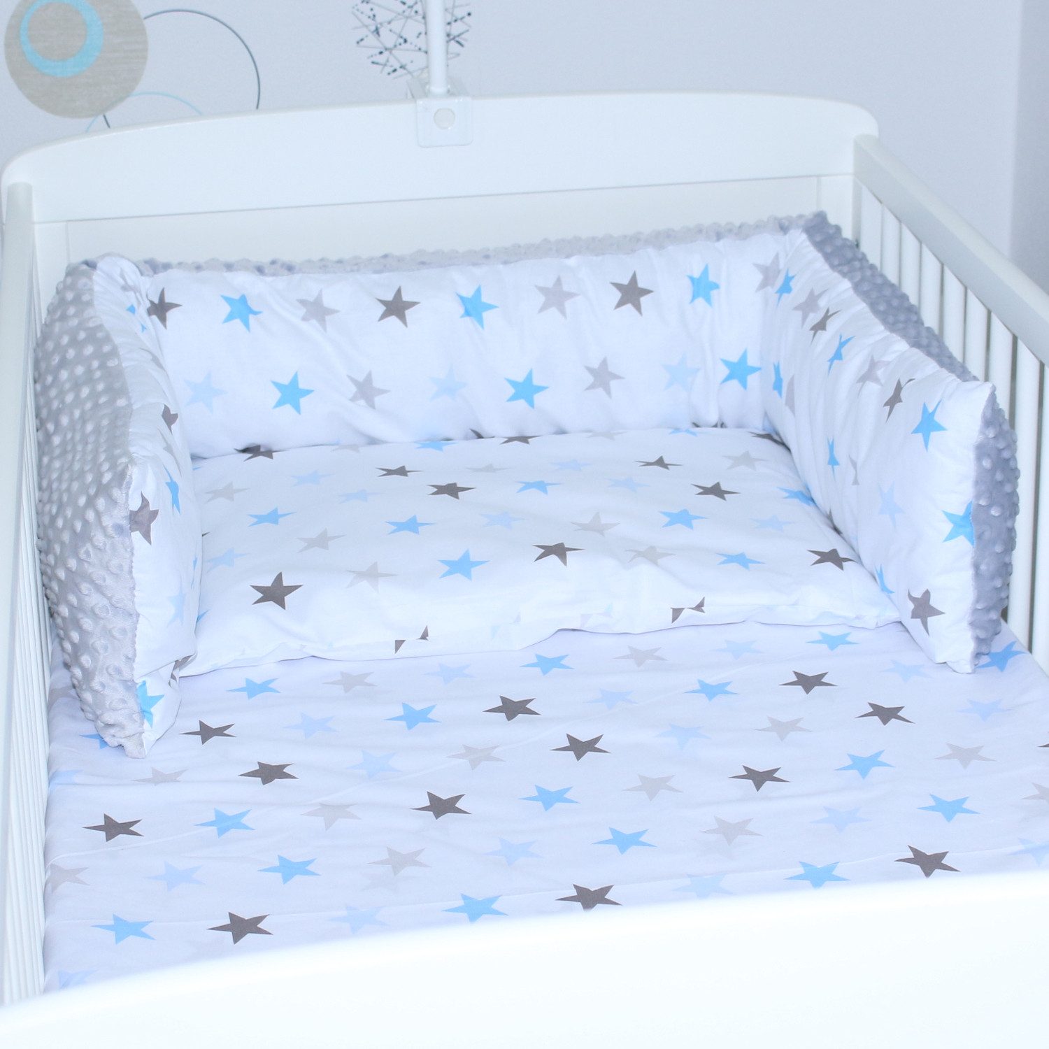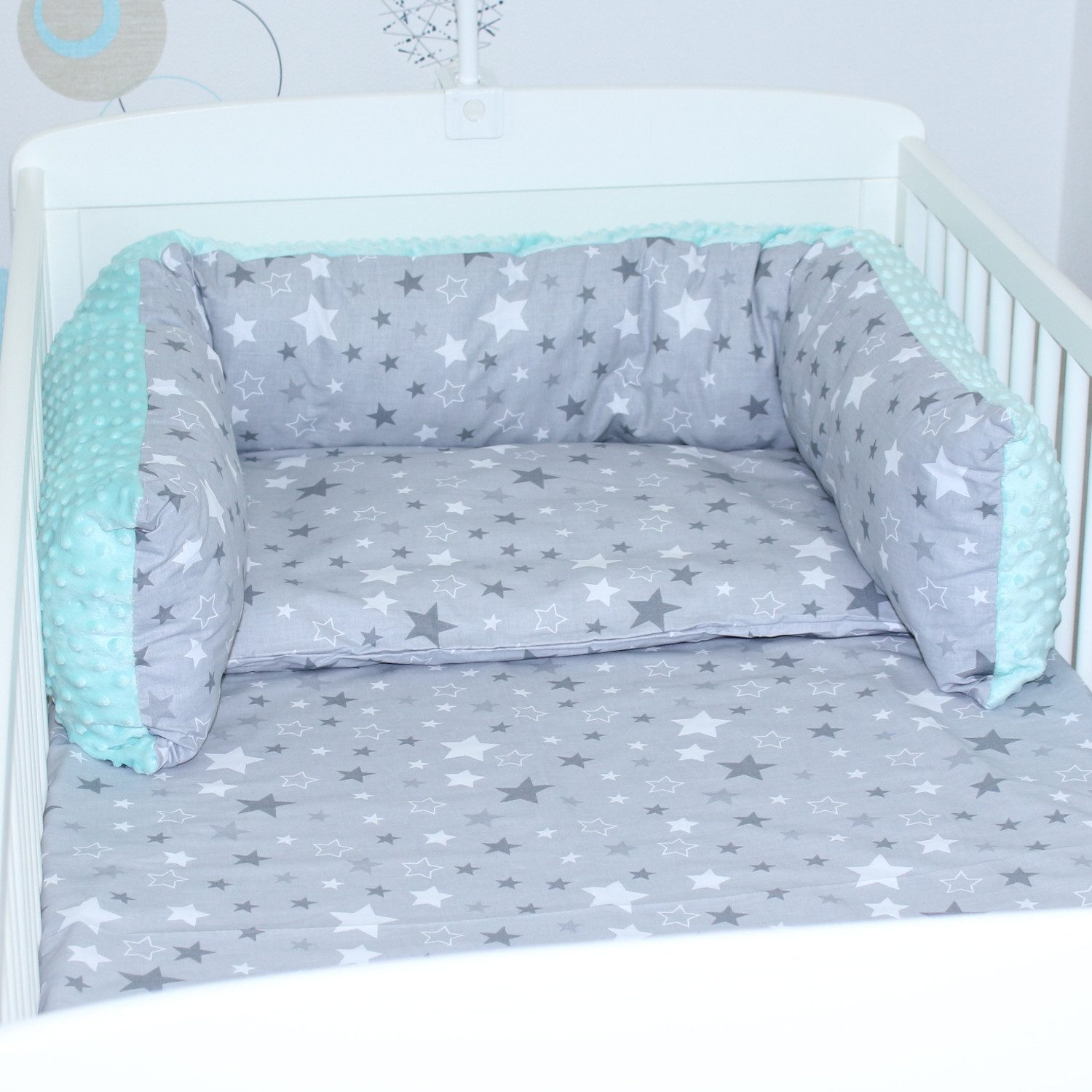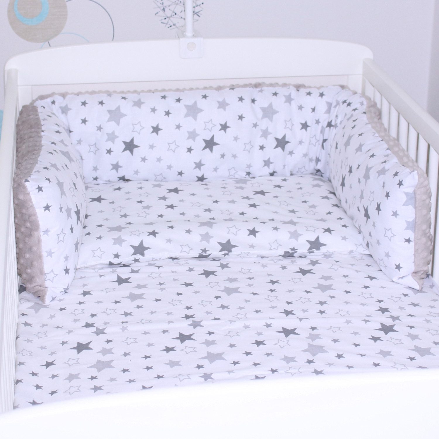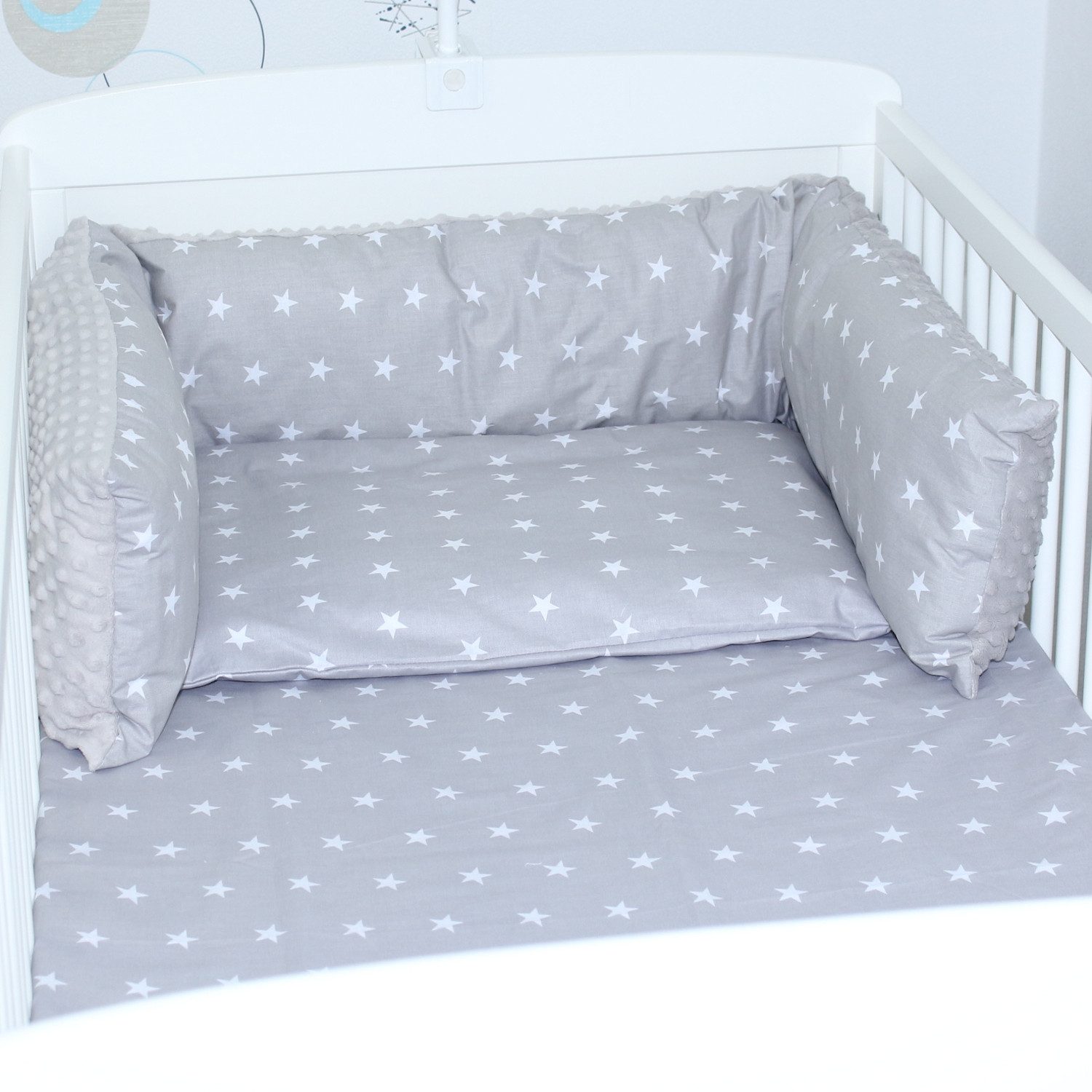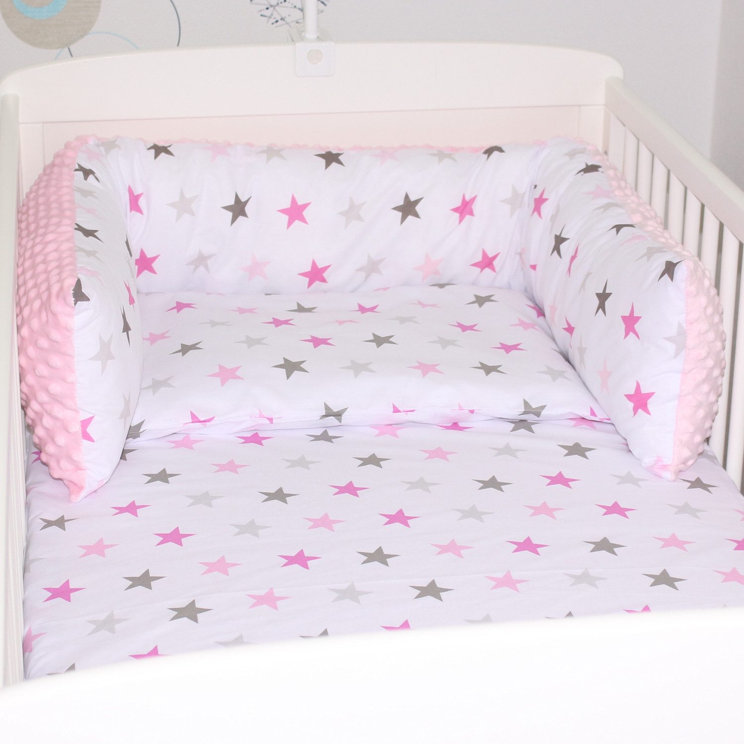 Die Bettschlange aus super weichem Minky, in schönen Designs, bietet nicht nur Schutz, sondern stellt auch einen Blickfang im Kinderzimmer dar.