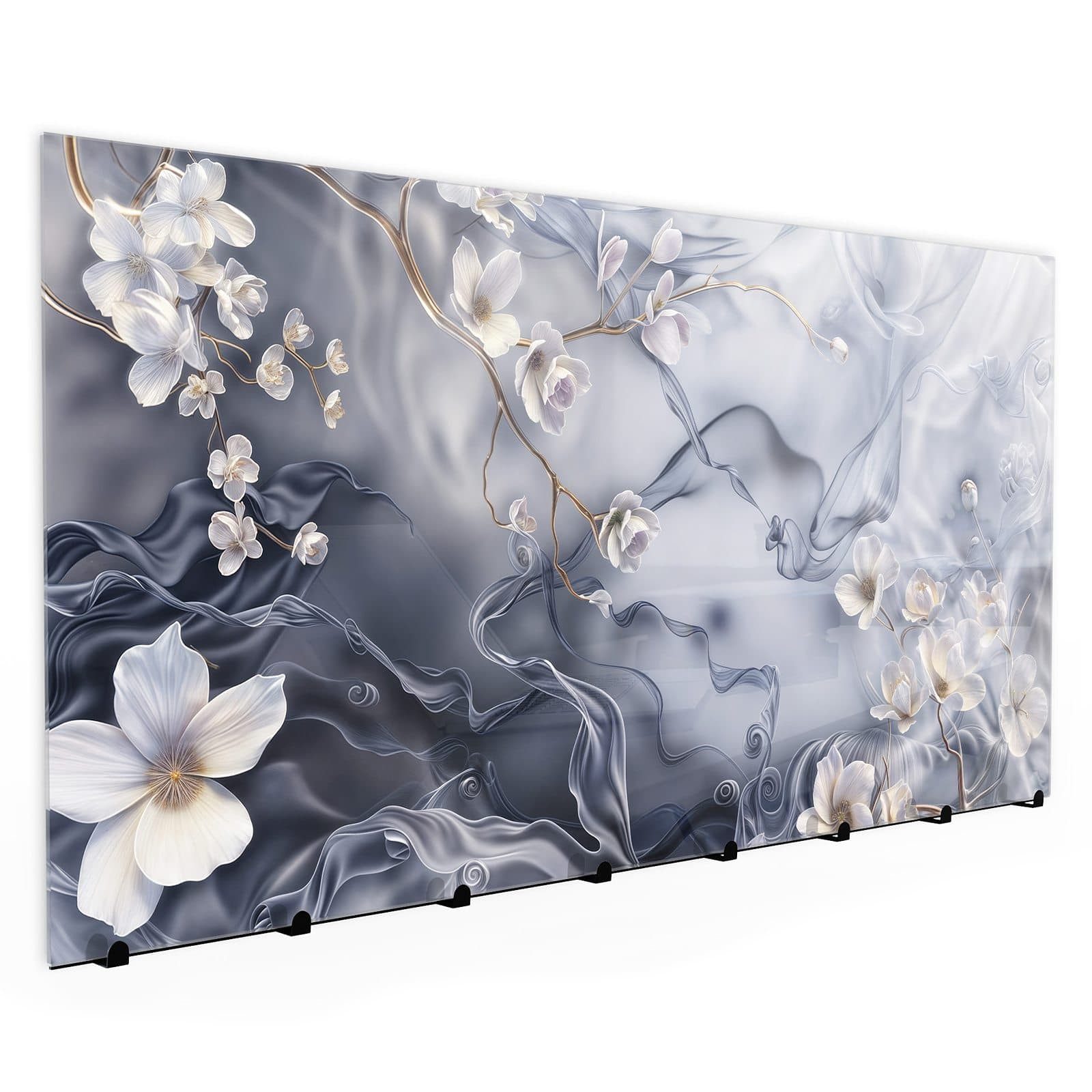 Primedeco Garderobenpaneel Kleiderhaken aus Glas Blumenwellen On Silk (1 St., Inkl. Magnete, Stifte und Montagematerial), Magnetisch & Beschreibbar