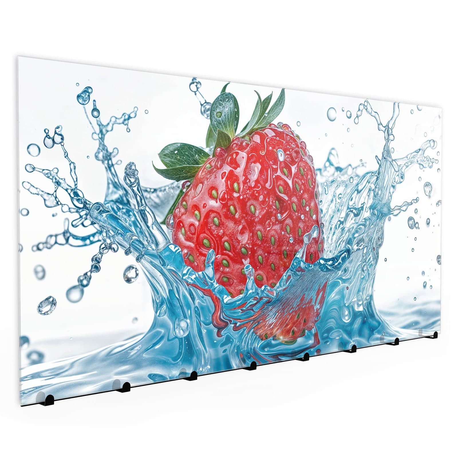 Primedeco Garderobenpaneel Kleiderhaken aus Glas Erdbeere Splash (1 St., Inkl. Magnete, Stifte und Montagematerial), Magnetisch & Beschreibbar