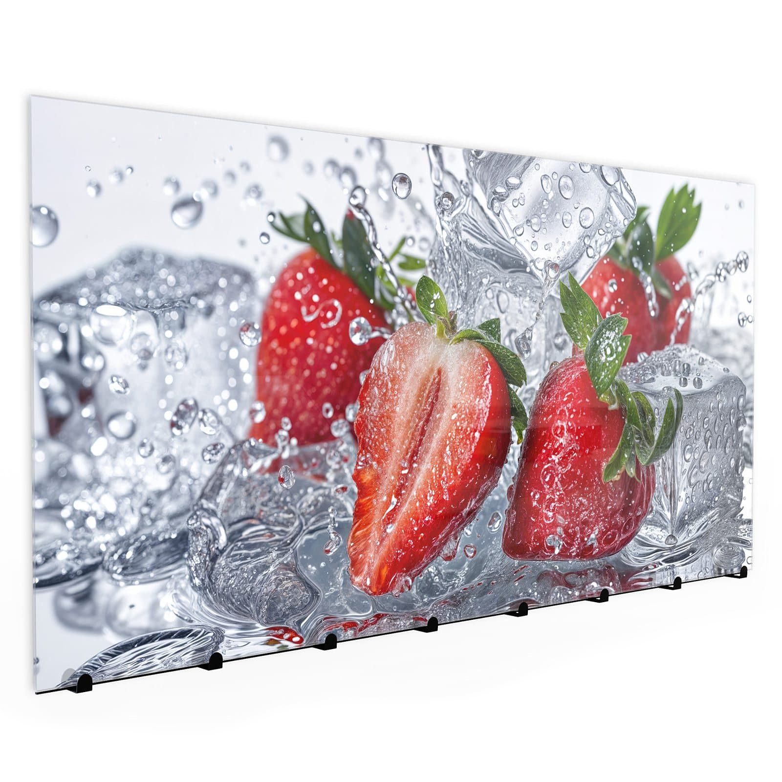 Primedeco Garderobenpaneel Kleiderhaken aus Glas Erdbeeren im Wasser (1 St., Inkl. Magnete, Stifte und Montagematerial), Magnetisch & Beschreibbar