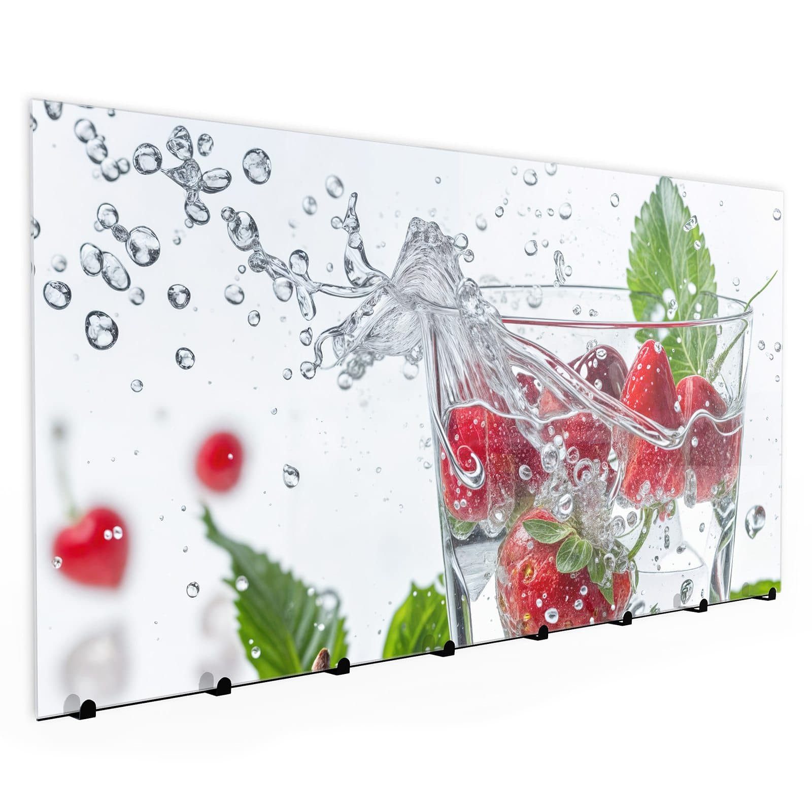 Primedeco Garderobenpaneel Kleiderhaken aus Glas Erdbeeren und Kirschen (1 St., Inkl. Magnete, Stifte und Montagematerial), Magnetisch & Beschreibbar