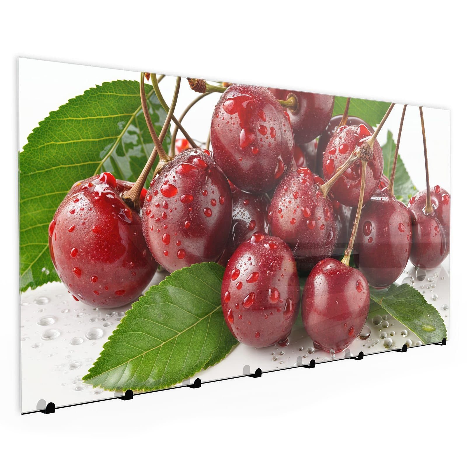 Primedeco Garderobenpaneel Kleiderhaken aus Glas Frische Kirschen (1 St., Inkl. Magnete, Stifte und Montagematerial), Magnetisch & Beschreibbar