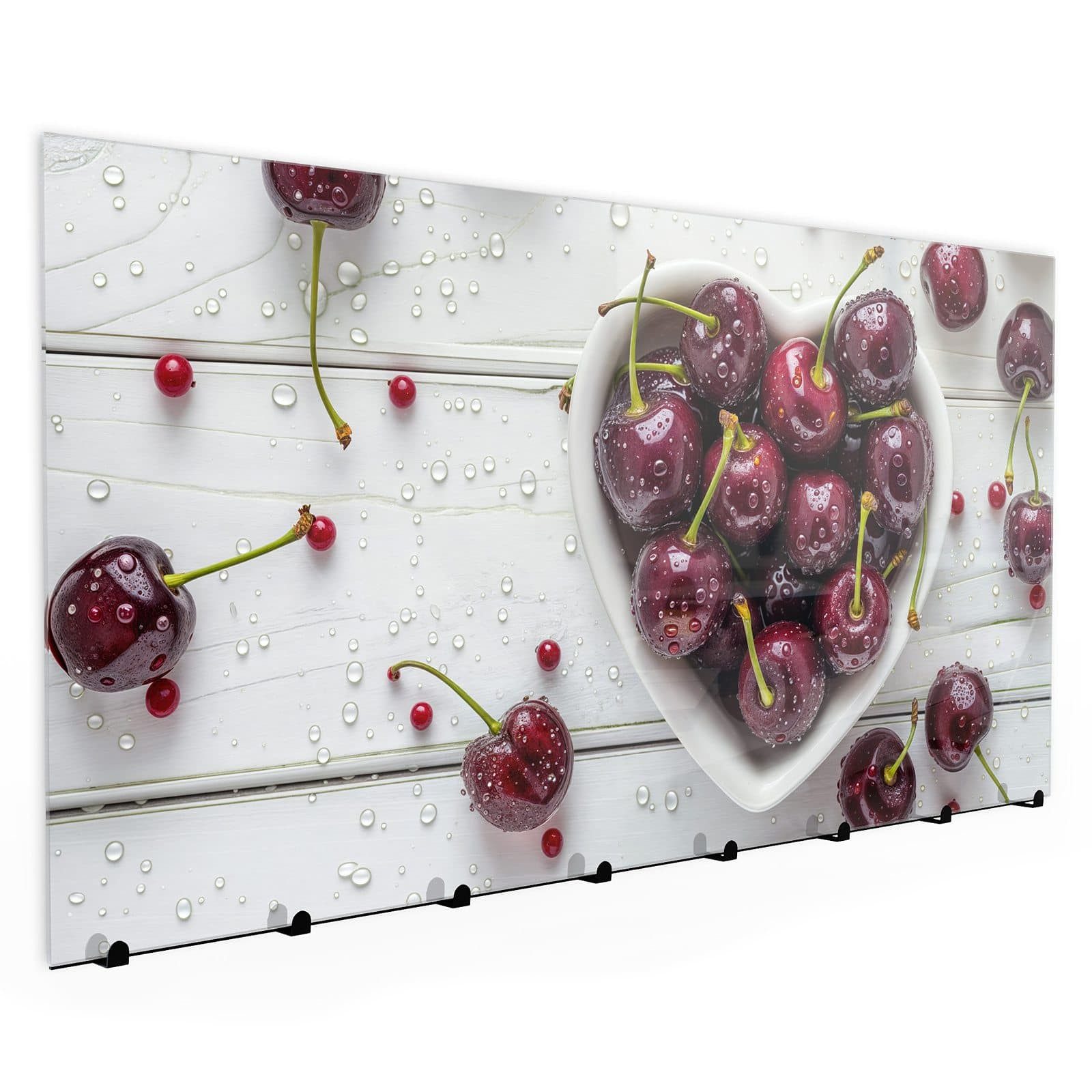 Primedeco Garderobenpaneel Kleiderhaken aus Glas Frische Kirschen (1 St., Inkl. Magnete, Stifte und Montagematerial), Magnetisch & Beschreibbar