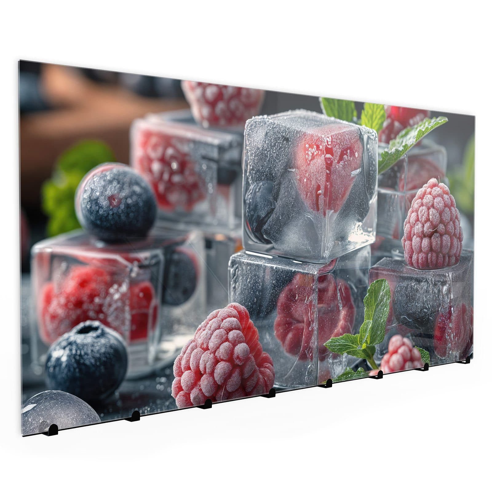 Primedeco Garderobenpaneel Kleiderhaken aus Glas Gefrorene Beeren (1 St., Inkl. Magnete, Stifte und Montagematerial), Magnetisch & Beschreibbar