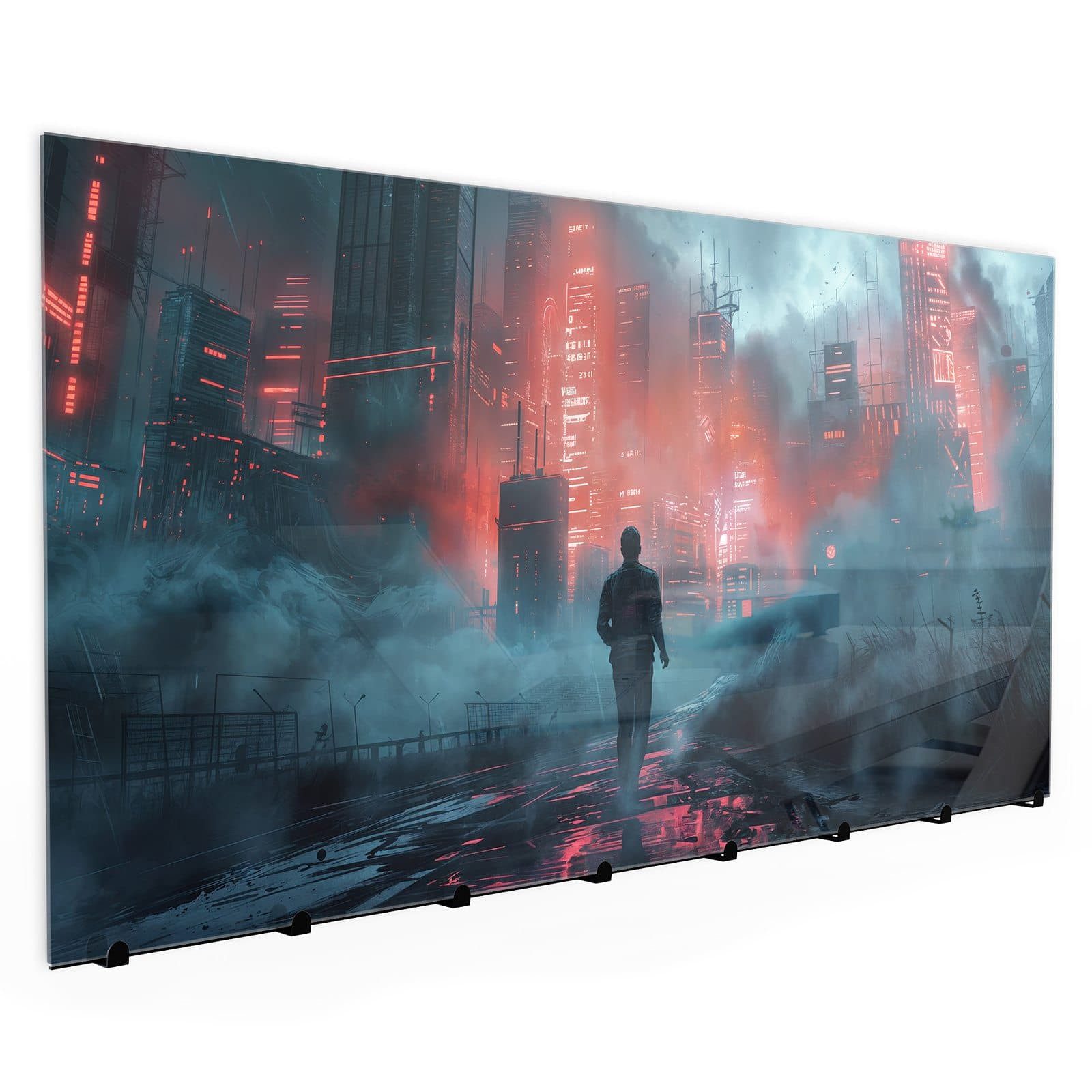 Primedeco Garderobenpaneel Kleiderhaken aus Glas Neonstadt (1 St., Inkl. Magnete, Stifte und Montagematerial), Magnetisch & Beschreibbar