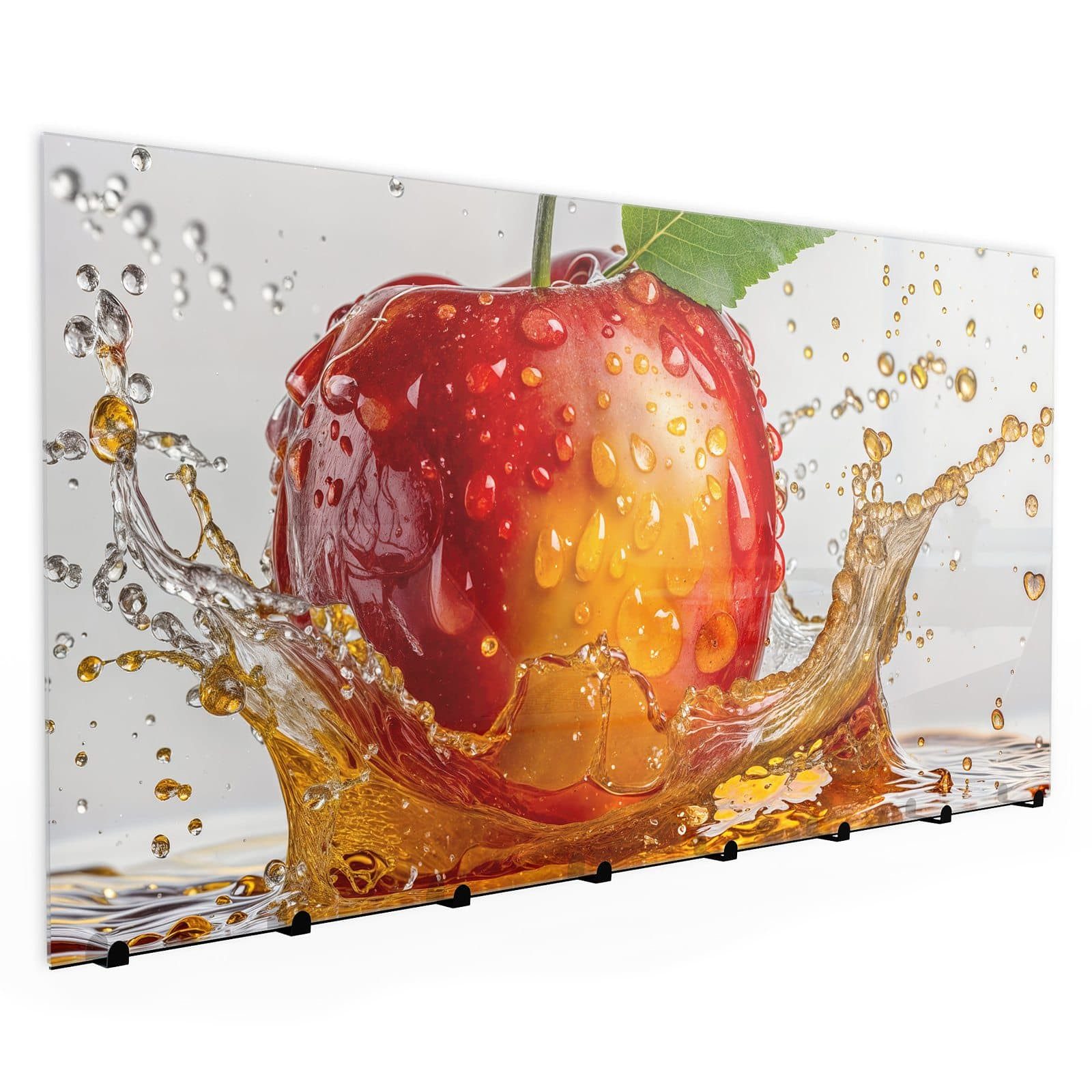 Primedeco Garderobenpaneel Kleiderhaken aus Glas Spritzender Apfel (1 St., Inkl. Magnete, Stifte und Montagematerial), Magnetisch & Beschreibbar