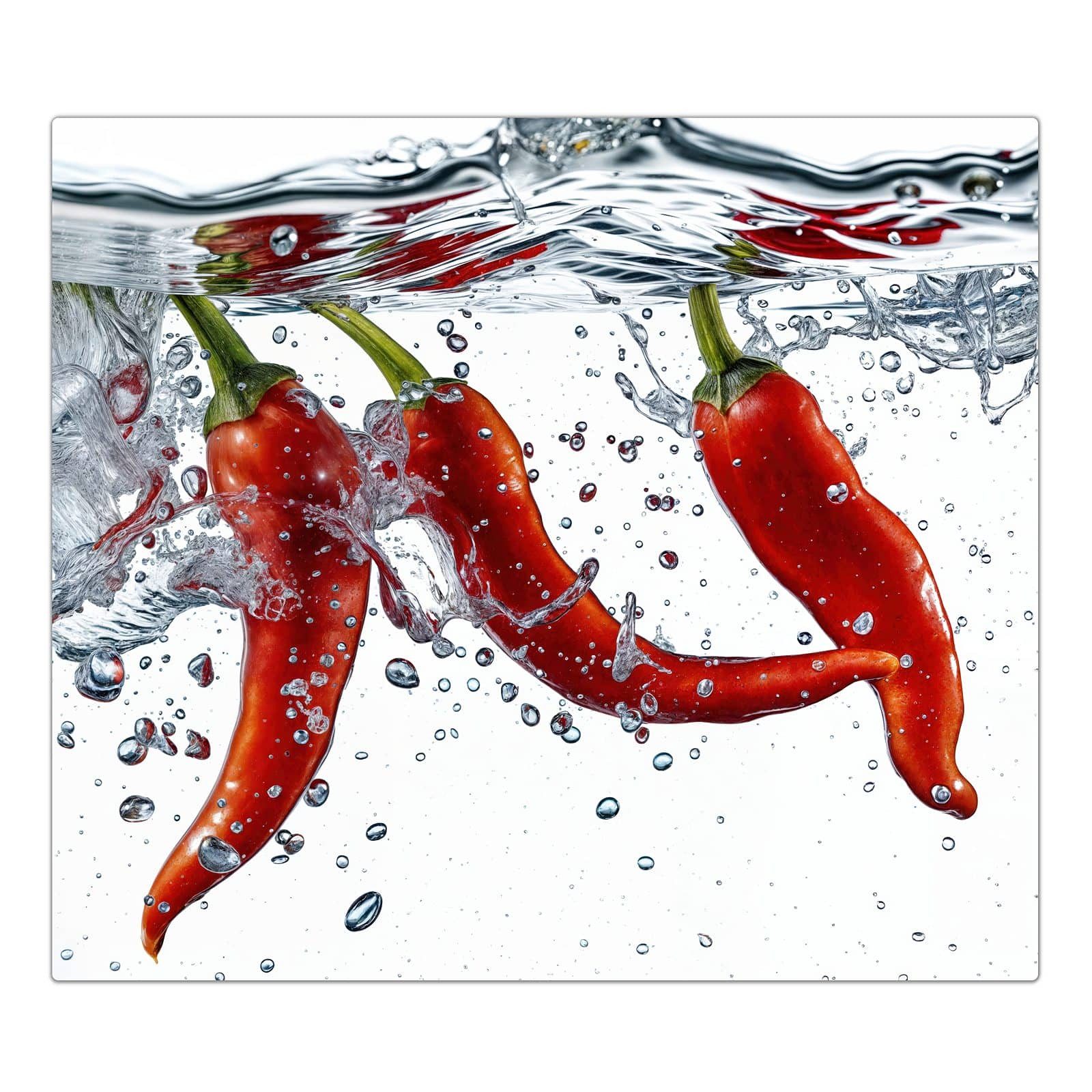 Primedeco Herd-Abdeckplatte Herdabdeckplatte Spritzschutz aus Glas Chilis im Wasser, Glas, (1 tlg)
