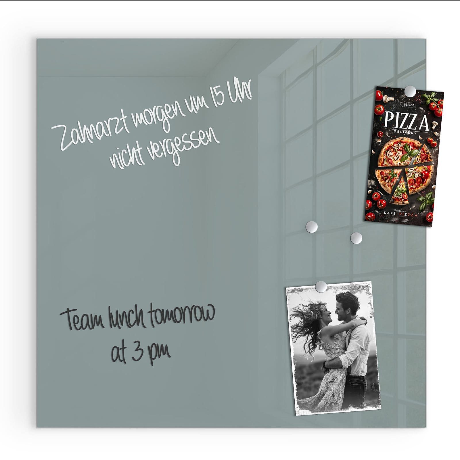 Ausstattung | Enthält 2 Neodym-Magnete, 1 Stift, 1 Reinigungstuch; magnetisch haftend, beschreibbar, aus 4 mm starkem Sicherheitsglas (ESG) |