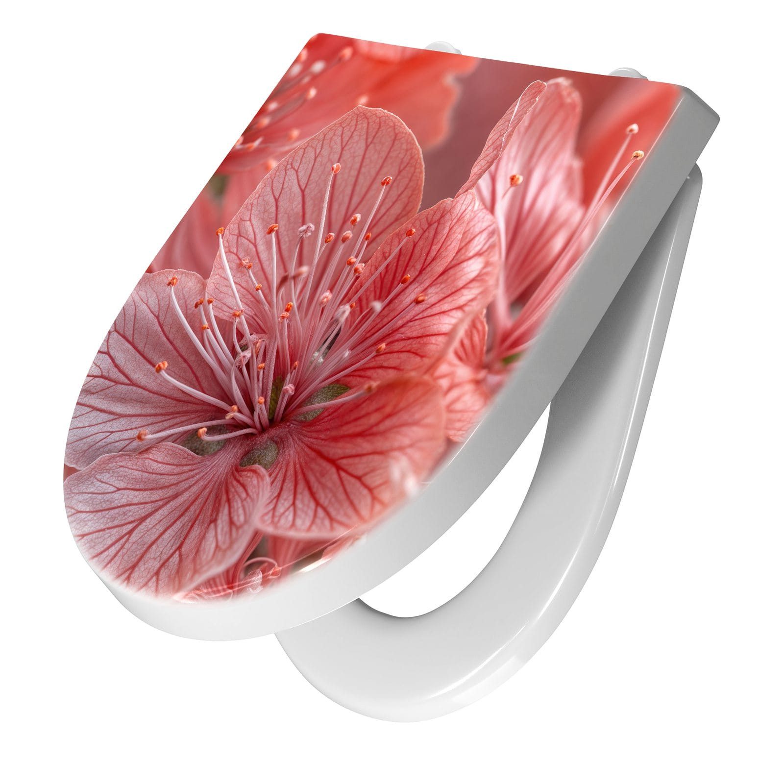 Ein besonderes Highlight ist das brillante Motiv Blumenpracht, das per UV-Direktdruck auf den WC-Deckel aufgebracht ist. Diese langlebige Drucktechnik sorgt für eine kratzfeste, farbintensive Oberfläche, die auch nach häufigem Gebrauch optisch überzeugt. Dank unserer großen Auswahl an Motiven setzen Sie mit jedem Sitz ein individuelles Design-Statement im Bad.
