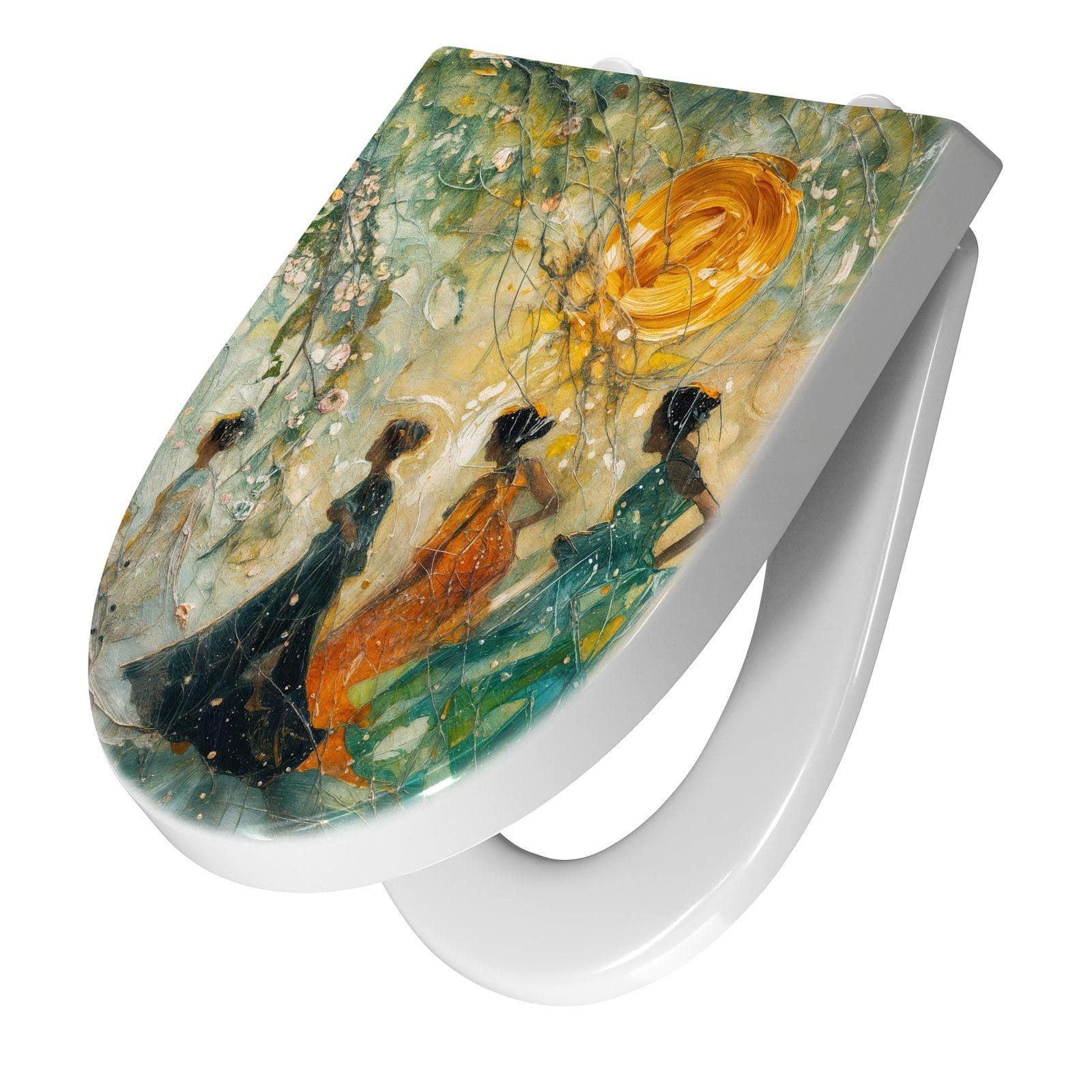 Ein besonderes Highlight ist das brillante Motiv Festliches Gemälde, das per UV-Direktdruck auf den WC-Deckel aufgebracht ist. Diese langlebige Drucktechnik sorgt für eine kratzfeste, farbintensive Oberfläche, die auch nach häufigem Gebrauch optisch überzeugt. Dank unserer großen Auswahl an Motiven setzen Sie mit jedem Sitz ein individuelles Design-Statement im Bad.