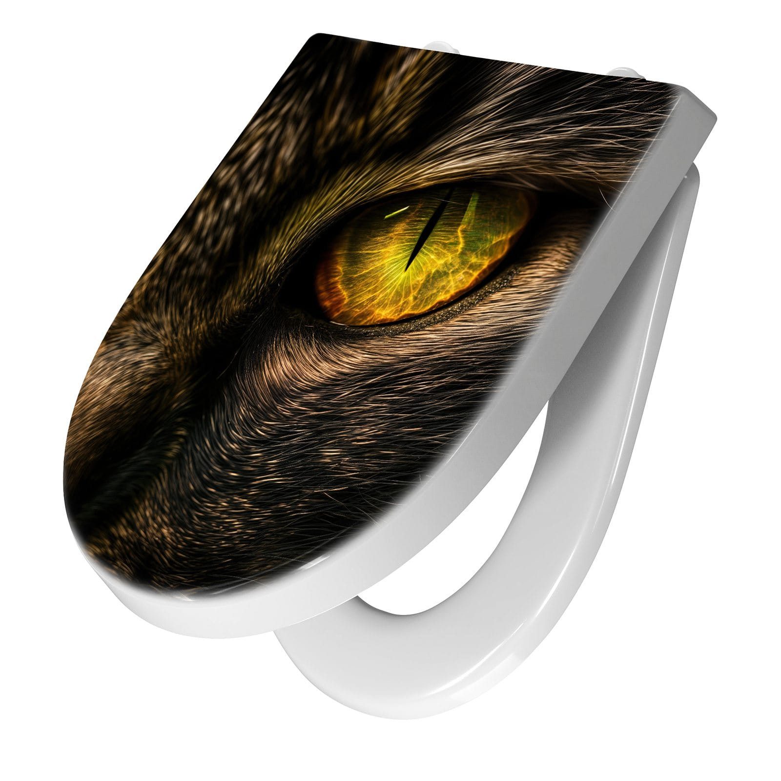 Ein besonderes Highlight ist das brillante Motiv Katzenaugencloseup, das per UV-Direktdruck auf den WC-Deckel aufgebracht ist. Diese langlebige Drucktechnik sorgt für eine kratzfeste, farbintensive Oberfläche, die auch nach häufigem Gebrauch optisch überzeugt. Dank unserer großen Auswahl an Motiven setzen Sie mit jedem Sitz ein individuelles Design-Statement im Bad.