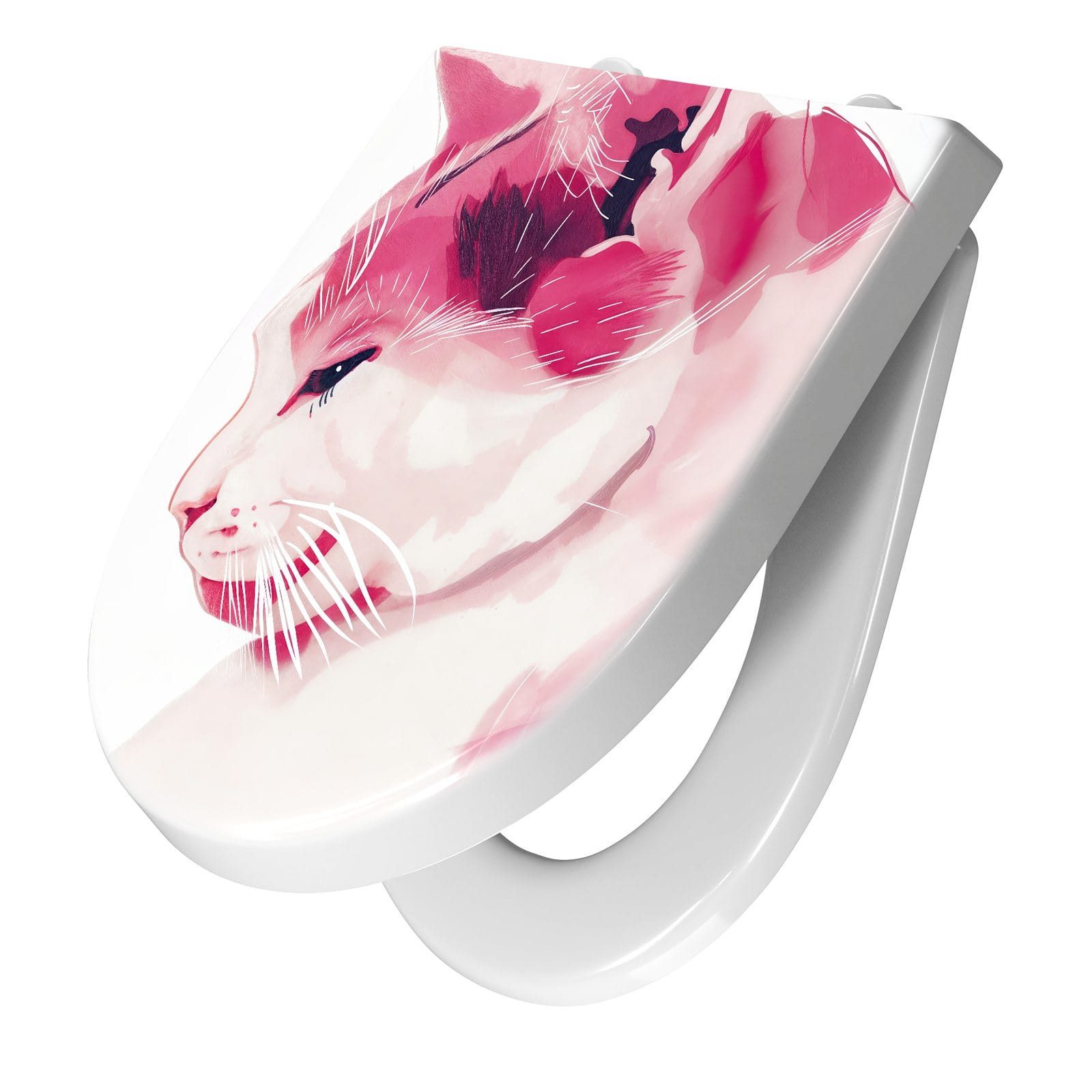 Ein besonderes Highlight ist das brillante Motiv Katzenportrait, das per UV-Direktdruck auf den WC-Deckel aufgebracht ist. Diese langlebige Drucktechnik sorgt für eine kratzfeste, farbintensive Oberfläche, die auch nach häufigem Gebrauch optisch überzeugt. Dank unserer großen Auswahl an Motiven setzen Sie mit jedem Sitz ein individuelles Design-Statement im Bad.