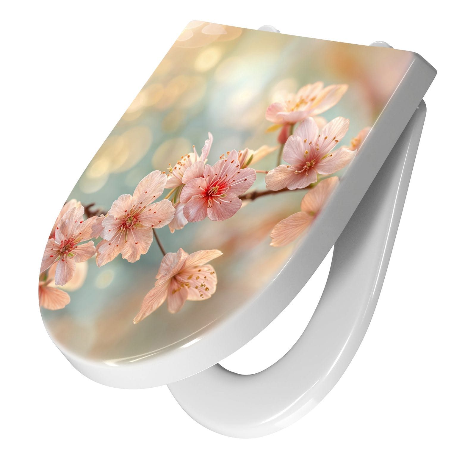 Ein besonderes Highlight ist das brillante Motiv Kirschblütenzauber, das per UV-Direktdruck auf den WC-Deckel aufgebracht ist. Diese langlebige Drucktechnik sorgt für eine kratzfeste, farbintensive Oberfläche, die auch nach häufigem Gebrauch optisch überzeugt. Dank unserer großen Auswahl an Motiven setzen Sie mit jedem Sitz ein individuelles Design-Statement im Bad.