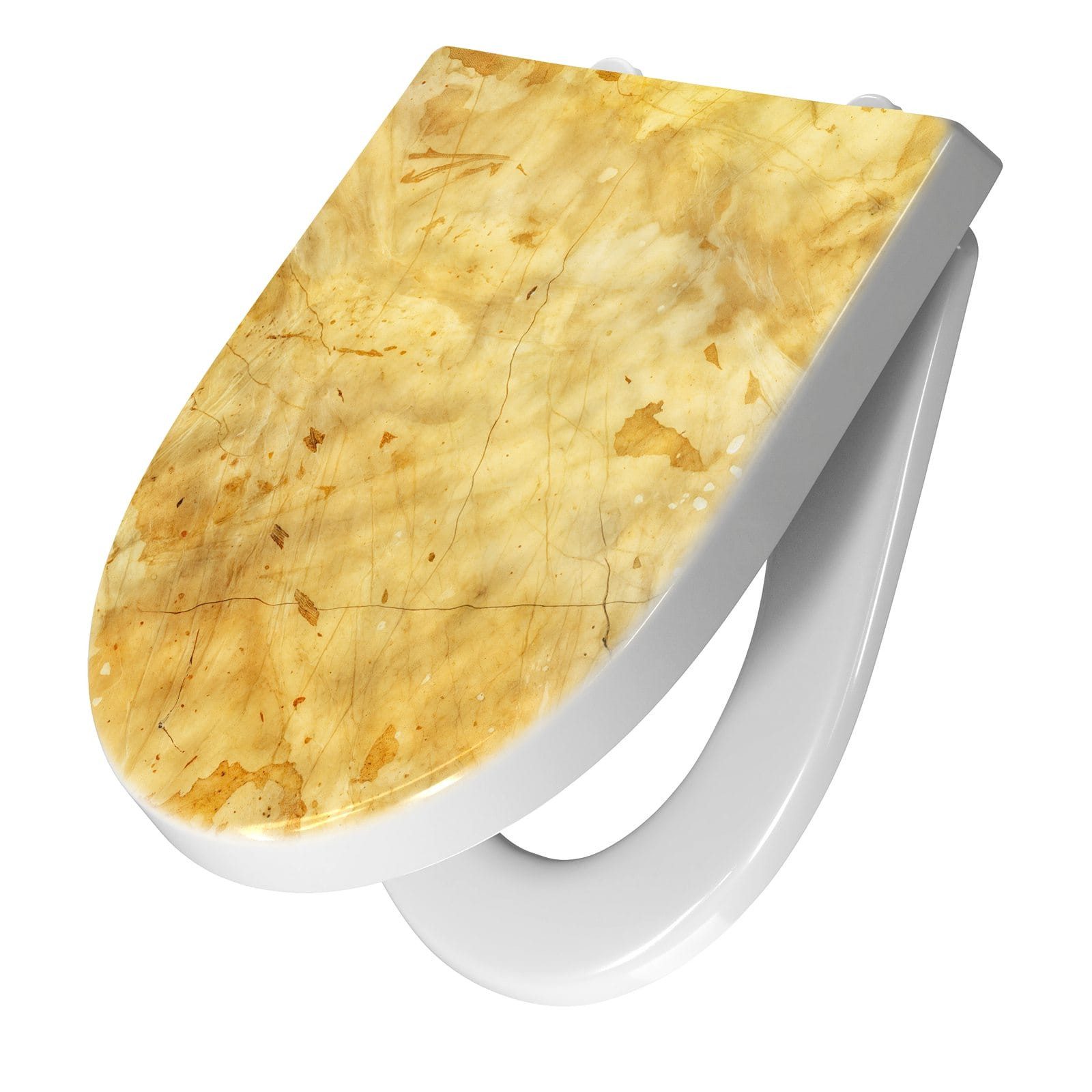 Ein besonderes Highlight ist das brillante Motiv Marmorierte Oberfläche, das per UV-Direktdruck auf den WC-Deckel aufgebracht ist. Diese langlebige Drucktechnik sorgt für eine kratzfeste, farbintensive Oberfläche, die auch nach häufigem Gebrauch optisch überzeugt. Dank unserer großen Auswahl an Motiven setzen Sie mit jedem Sitz ein individuelles Design-Statement im Bad.