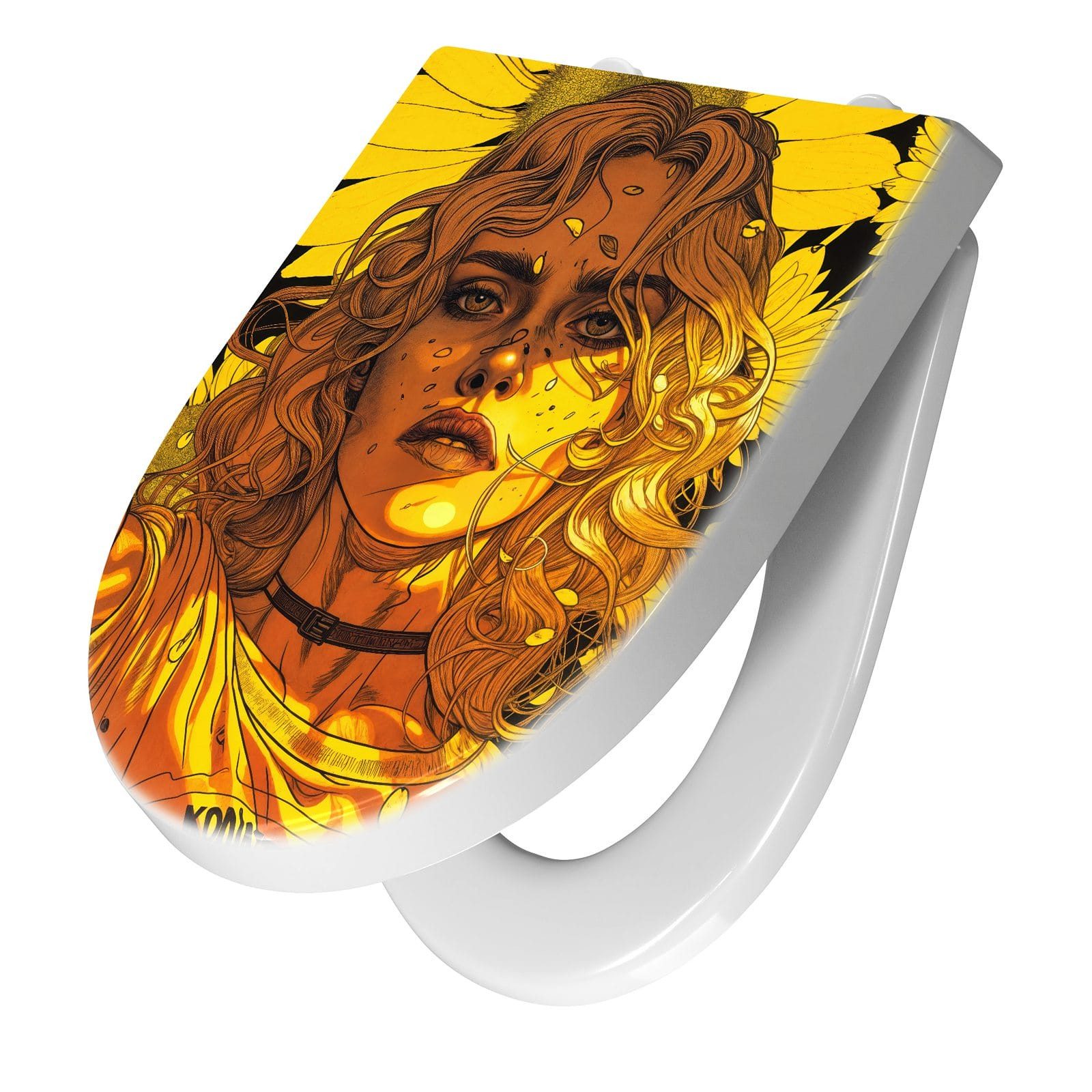 Ein besonderes Highlight ist das brillante Motiv Sonnenblumenmädchen, das per UV-Direktdruck auf den WC-Deckel aufgebracht ist. Diese langlebige Drucktechnik sorgt für eine kratzfeste, farbintensive Oberfläche, die auch nach häufigem Gebrauch optisch überzeugt. Dank unserer großen Auswahl an Motiven setzen Sie mit jedem Sitz ein individuelles Design-Statement im Bad.