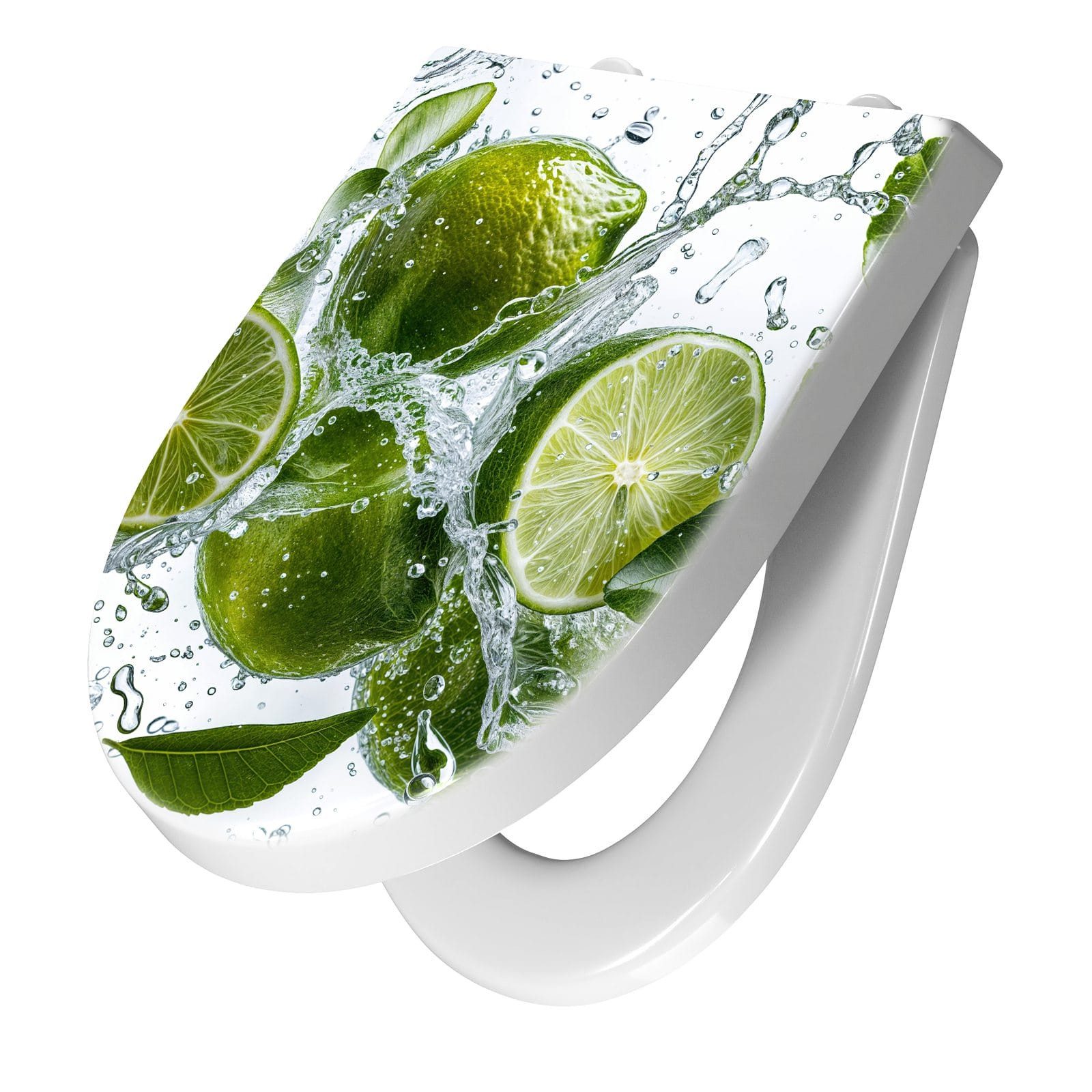 Ein besonderes Highlight ist das brillante Motiv Spritzige Limetten, das per UV-Direktdruck auf den WC-Deckel aufgebracht ist. Diese langlebige Drucktechnik sorgt für eine kratzfeste, farbintensive Oberfläche, die auch nach häufigem Gebrauch optisch überzeugt. Dank unserer großen Auswahl an Motiven setzen Sie mit jedem Sitz ein individuelles Design-Statement im Bad.