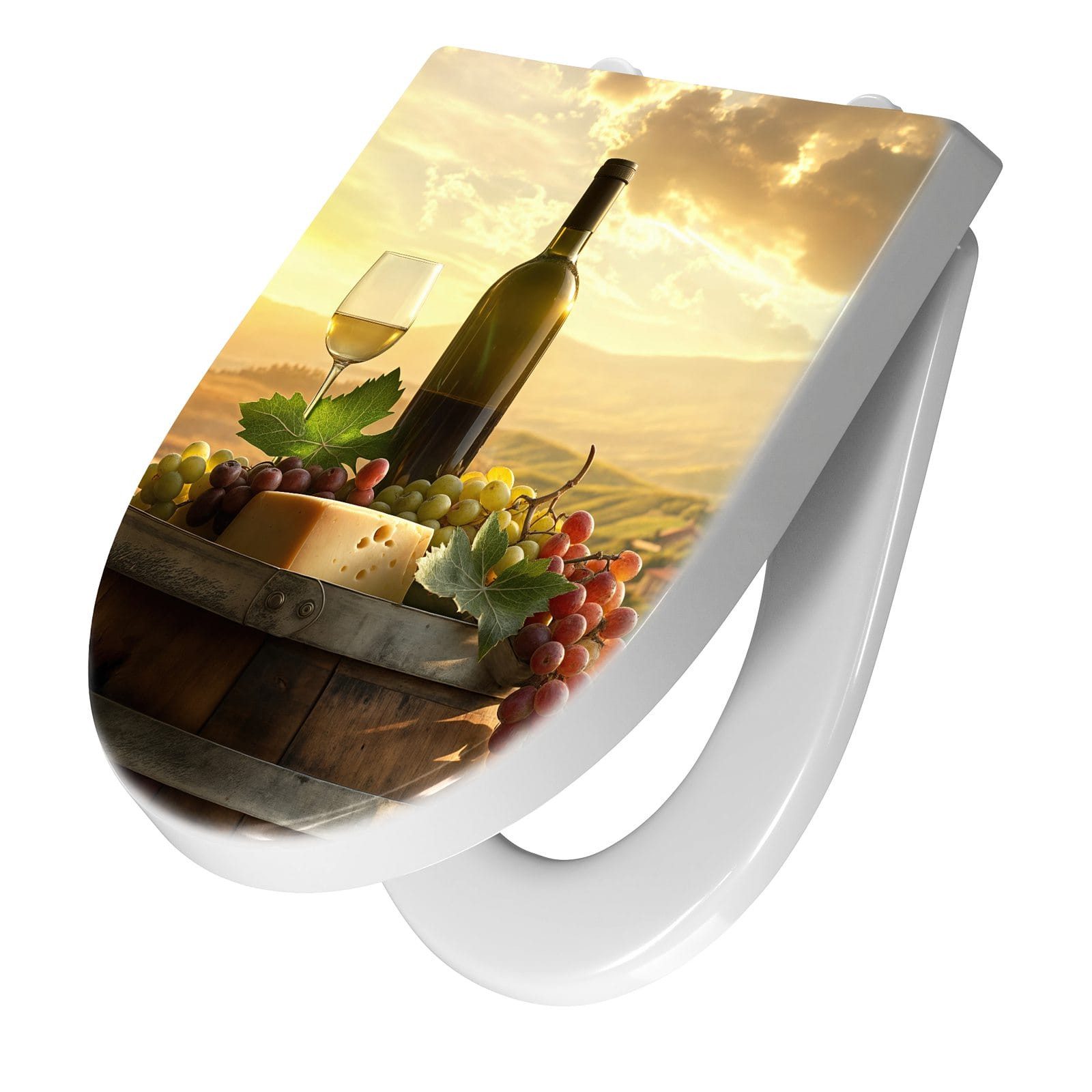 Ein besonderes Highlight ist das brillante Motiv Weinland Idylle, das per UV-Direktdruck auf den WC-Deckel aufgebracht ist. Diese langlebige Drucktechnik sorgt für eine kratzfeste, farbintensive Oberfläche, die auch nach häufigem Gebrauch optisch überzeugt. Dank unserer großen Auswahl an Motiven setzen Sie mit jedem Sitz ein individuelles Design-Statement im Bad.