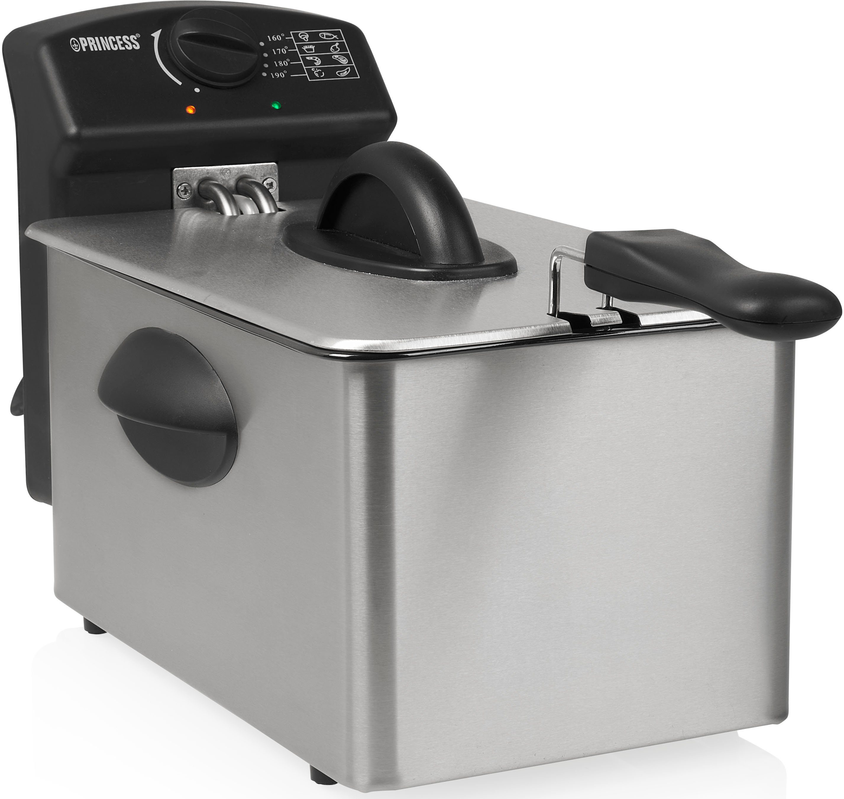 Впередe Vorteile | Die Princess Fritteuse sieht mit ihrem Edelstahlgehäuse nicht nur gut aus, sie hat auch eine hohe Leistung von 2000 Watt, wodurch das Öl schnell auf Temperatur gebracht wird. Obendrein hat sie ein großes Fassungsvermögen von 4 Litern! Somit eignet sie sich hervorragend zum Braten von Snacks für eine Party oder für eine einfache Mahlzeit mit der ganzen Familie nach einem anstrengenden Tag. Die herausnehmbare Emaille-Innenwanne der Fritteuse macht die Reinigung zum Kinderspiel. Lassen Sie die Fritteuse abkühlen und nehmen Sie die Innenwanne heraus, um das Öl auszugießen. Danach können Sie die Innenwanne und den Frittierkorb einfach in die Spülmaschine geben. Da alle Teile der Fritteuse abnehmbar sind, war die Reinigung einer Fritteuse nie einfacher! Jeder kennt die Geruchsbildung bei der Benutzung einer Fritteuse – die Princess Fritteuse ist deshalb mit einer Kühlzone ausgestattet, die das Verbrennen von Rückständen verhindert. Diese Technologie sorgt nicht nur für eine geringere Geruchsbildung, sondern hält das Öl auch über einen längeren Zeitraum sauber. Keine ungesunden, verbrannten Rückstände mehr auf den frisch frittierten Pommes! |