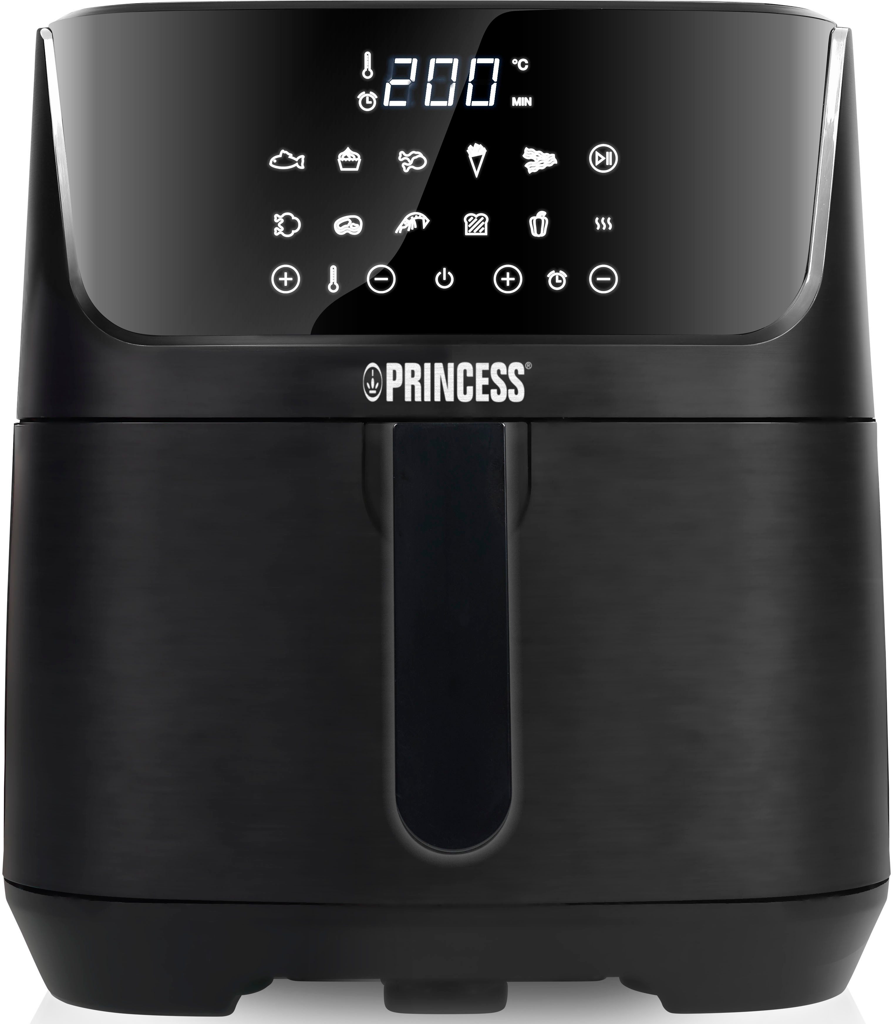 Впередe Vorteile | Die Princess Digitale Heißluftfritteuse mit 6,5 Litern und 1800 Watt ist ein echtes Must-Have für jede Küche. Sie ermöglicht die einfache Zubereitung von Mahlzeiten für mehrere Personen. Die Trennwand erleichtert die Zubereitung ganzer Mahlzeiten. Ideal für Vorspeisen am Wochenende oder gesunde Mahlzeiten unter der Woche. Das schwarze Gehäuse und das digitale Touch-Bedienfeld verleihen der Heißluftfritteuse ein luxuriöses Erscheinungsbild. Mit 12 vorprogrammierten Programmen ist die Bedienung kinderleicht. Stellen Sie den digitalen Timer (60 min.) ein, drücken Sie auf den Knopf, und die Heißluftfritteuse erledigt den Rest. Die Princess Heißluftfritteuse bietet zusätzliche Sicherheit dank Überhitzungsschutz. Der abnehmbare Korb mit Antihaftbeschichtung ist spülmaschinenfest und leicht zu reinigen. Anti-Rutsch-Füße gewährleisten Stabilität und verhindern ein Verrutschen während des Betriebs. Die Princess Heißluftfritteuse verfügt über viele praktische Funktionen. Der Temperaturbereich von 80–200 Grad ermöglicht die Zubereitung verschiedener Gerichte. Die schnelle Luftkonvektion frittiert gesund, ohne Öl. Der abnehmbare Korb ist spülmaschinenfest und die Anti-Rutsch-Füße sorgen für Stabilität. Mit der Princess Digitale Heißluftfritteuse sind die Möglichkeiten endlos! Sie eignet sich nicht nur für Pommes frites, sondern auch für Fleisch, Kuchen, Snacks und sogar Pizza. Für Inspirationen besuchen Sie Cookwithprincess.com und entdecken Sie leckere Rezepte für Ihre Heißluftfritteuse. |