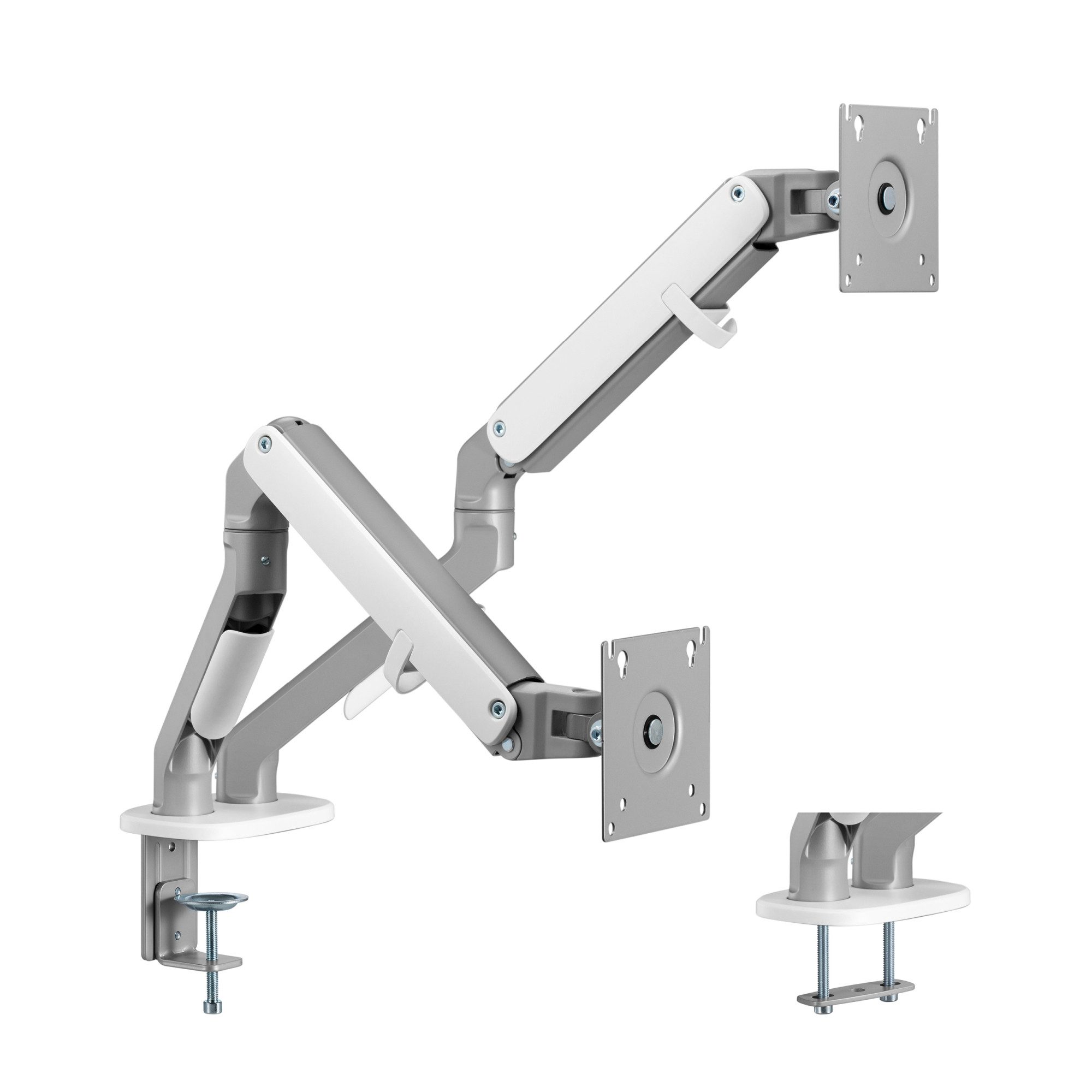 - Zwei Gelenkarme für flexible Positionierung von Monitoren bis zu 32"