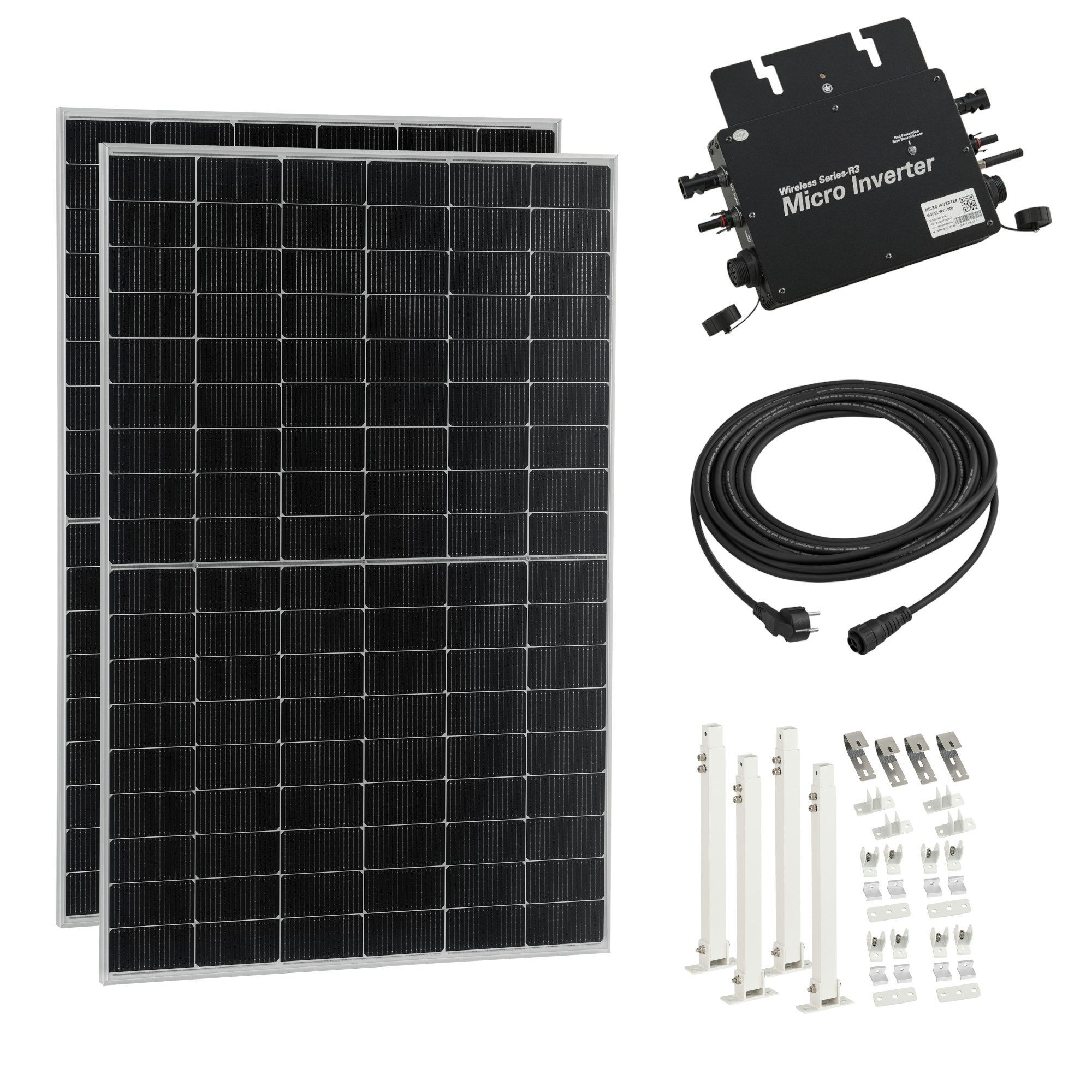 - Set bestehend aus zwei 415 W Solarmodulen, 10m Kabel und Wechselrichter