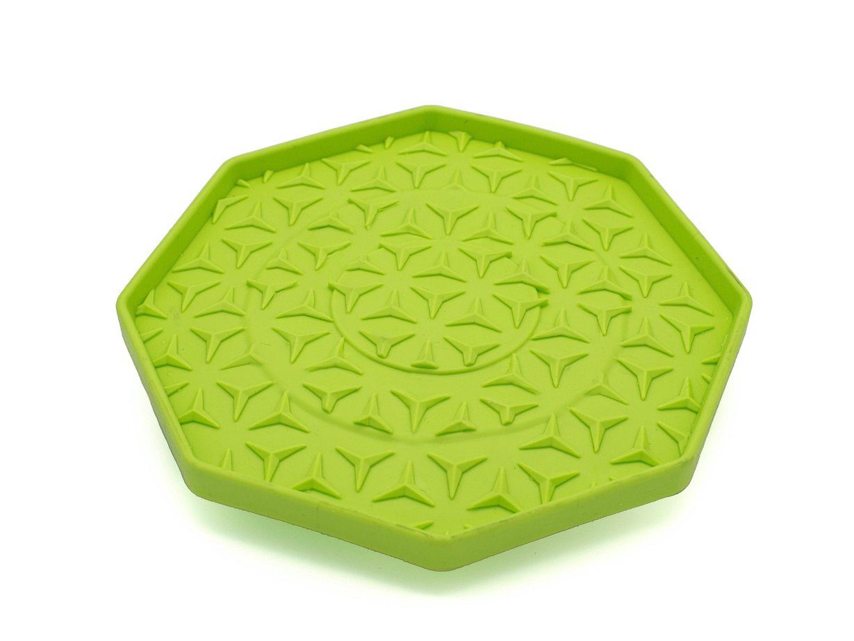 Leckmatte Ladi Mat Wobbler – Silikon-Schleckmatte für Hunde und Katzen, 25 cm STRESSFREI Hunde & Katzen BADEN & pflegen: Das Ablecken des Futters auf unserer Ladi Mat sorgt für eine tolle Ablenkung während des Duschens, Krallen schneidens usw. LANGSAME FÜTTERUNG: Das Futter setzt sich auf der Mattenoberfläche ab, was die Fütterung drastisch verlangsamt und ihnen somit mehr Zeit gibt LÄNGERE ABLENKUNG DURCH WOBBLER: Im Vergleich zu herkömmlichen Leckmatten ist die Ladi Matt in sich beweglich (Wobbler). So müssen die Tiere sich mehr anstrengen, um an die Leckereien zu kommen SILIKON IN LEBENSMITTELQUALITÄT: Unsere Schleckmatte für Hunde & Katzen besteht aus hochwertigem Silikon in Lebensmittelqualität Einfache Reinigung UND ANWENDUNG: Die Leckmatte ist spülmaschinengeeignet und haftet mithilfe des Saugnapfs an jeder glatten Oberfläche Daten: Ca. 25,0 cm Durchmesser, 3 cm hoher Saugnapf Für Hunde und Katzen geeignet Stimuliert die Verdauung Mit großem, mittigem Saugnapf – Matte wackelt um den Saugnapf Ungiftig, lebensmittelecht, frostfest Leicht zu reinigen, spülmaschinengeeignet Silikon mit speziellem Antirutschbelag Die Schleckmatte Ladi Mat Wobbler ist eine gelungene Впередentwicklung der beliebten, flachen Leckmatten. Der Wobbler verfügt über einen kräftigen Saugnapf in der Mitte. Sobald die Fellnasen an den Noppenteller kommen, beginnt dieser sich zu bewegen und zu wackeln. So müssen die Tiere sich mehr anstrengen, um an die Leckereien zu kommen, gleichzeitig ist jeder Futtergang mit dem Wobbler ein neues, anderes Erlebnis. Dieses Wackel-Futter-Spielzeug begeistert Hunde und Katzen gleichermaßen über einen längeren Zeitraum. Die Noppengröße ist so gewählt, dass sowohl kleine als auch große Vierbeiner über längere Zeit sich damit beschäftigen können. Wie bei anderen Schleckmatten auch, bietet der Ladi Mat Wobbler Ablenkung und Beruhigung für die Tiere. Das verwendete Silikon ist lebensmittelecht, ungiftig und kann einfach in der Spülmaschine gereinigt werden. Der Saugnapf sorgt dafür, dass die Schleckmatte an Ort und Stelle bleibt. Sie können den Wobbler auch in der Dusche oder Badewanne befestigen und ihren felligen Freund ablenken während sie ihn duschen oder baden. Durch den Saugnapf kann der Slow Feeder an die verschiedensten Stellen positioniert werden, so dass keine Langeweile für die Vierbeiner aufkommt.