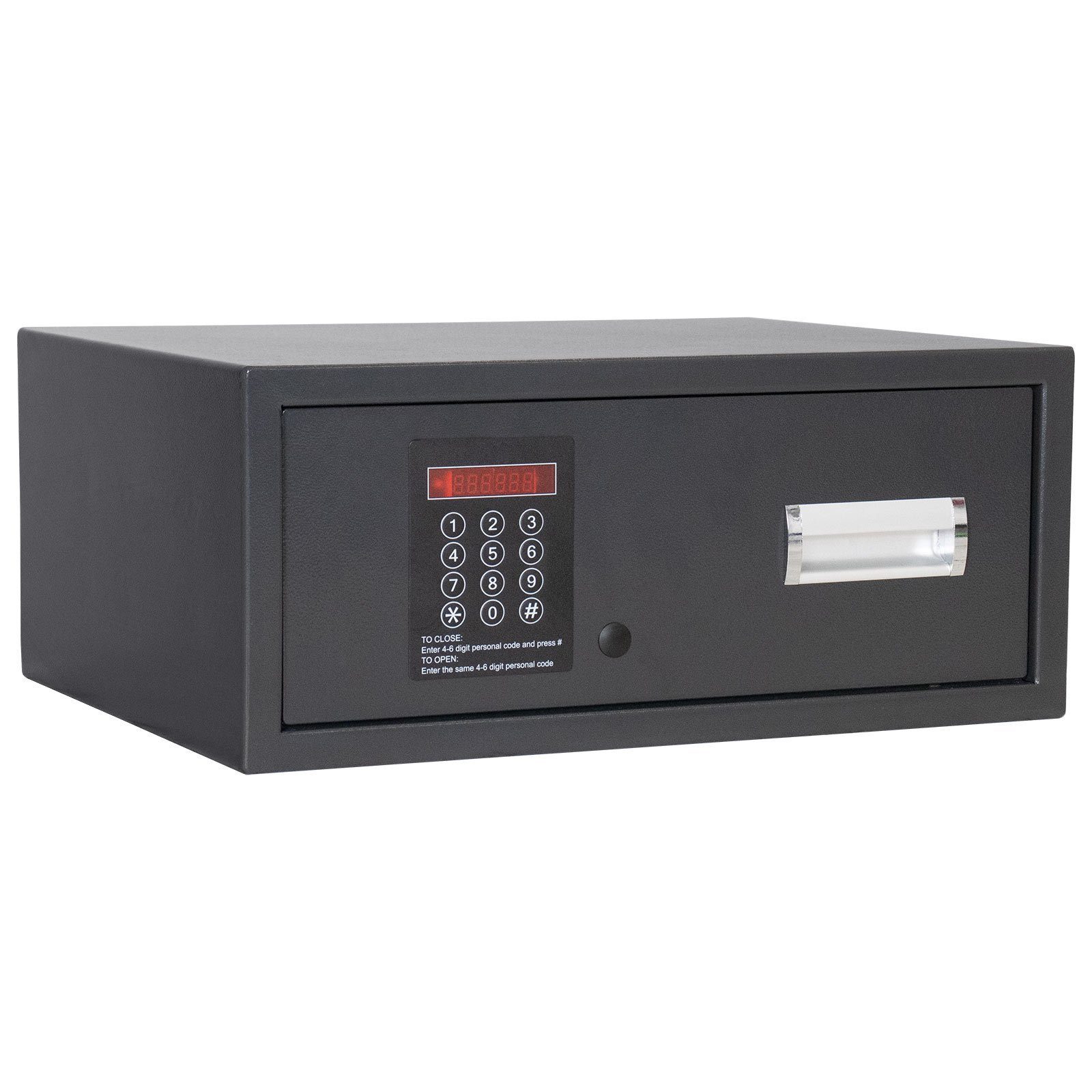Der Schubladentresor Movement von Profirst läuft leicht auf stabilen Teleskopschienen und schließt mit einem Elektronikschloss. Im Notfall ist eine Öffnung mit einem Schlüssel, der zweifach ausgeliefert wird, möglich; die Batterien sind für das Schloss nicht im Lieferumfang enthalten. Der Tresor kann auch durch einen Mastercode geöffnet werden. Die Schubladen müssen vor der Bohrung entfernt werden - dies gelingt durch Drücken der beiden Plastiksperren auf den Metallschienen. Dadurch wird der Sicherheitsmechanismus entriegelt und die Schublade kann herausgenommen werden. Besonders für Hotels geeignet.