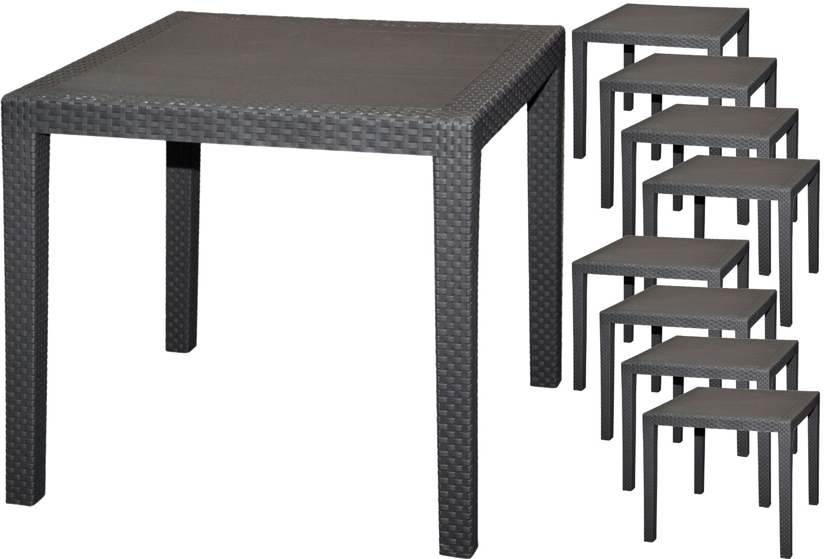 Kunststoff Gartentisch mit Rattan-Optik. Sehr pflegeleichte Oberfläche und Witterungsbeständiges Material. Zusätzlich ist die Montage & Demontage dank des Stecksystem sehr unkompliziert.