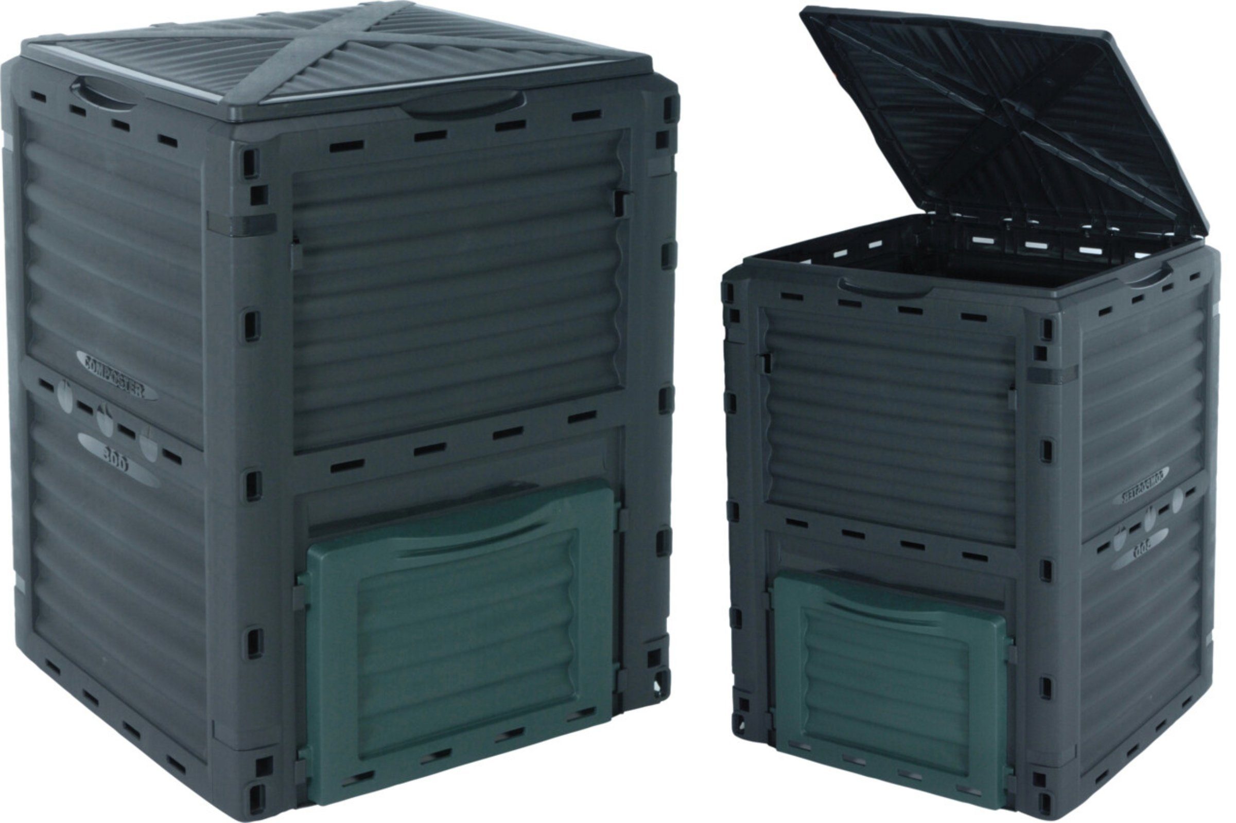 Praktischer Kompostierer mit einem Füllvolumen von 300L. Zusätzlich besitzt dieser eine abnehmbare Kunststoffplatte an der Unterseite für einen optimalen Kompostier Effekt.