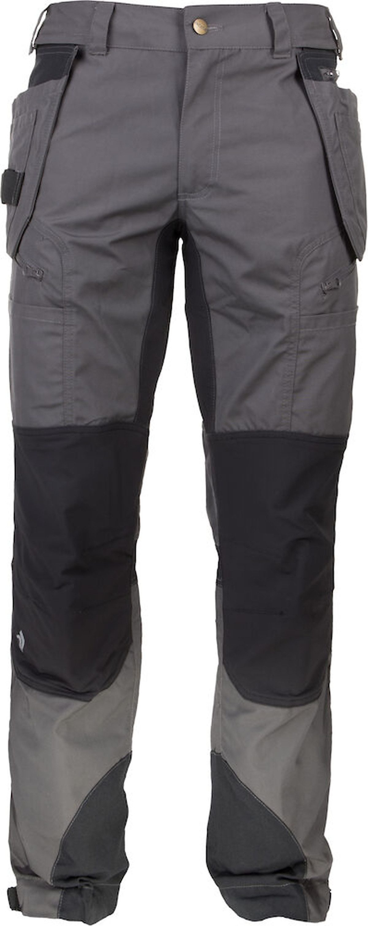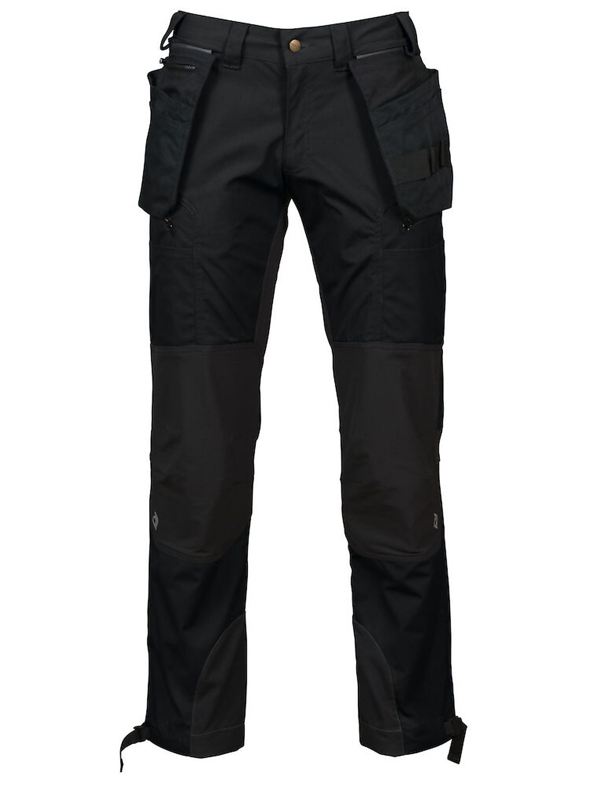 Bundhose mit Stretchmaterial über Sitz, Schritt und Knie für zusätzliche Bewegungsfreiheit. Belüftungsöffnungen mit Reißverschlüssen an beiden Beinseiten und Netzfutter. Beintaschen mit Reißverschlüssen an beiden Seiten und Außentaschen für Werkzeuge, beide mit internen Handytaschen und Halterung zum Anbringen des Personalausweises. Abnehmbare Holstertaschen. Breitere Gürtelschlaufe hinten, um Druck vom Gürtel zu vermeiden. Reflektierende Details auf der Rückseite der Knie für bessere Sichtbarkeit. Einstellbare Beinenden. Vorgebeugte Knie und Innentaschen für Knieschützer, in zwei Höhenstufen verstellbar. Holstertaschen und Beinabschlüsse sind mit Cordura® verstärkt, um die Haltbarkeit zu erhöhen. 65% Polyester, 35% Baumwolle. Material 2: 91,5% Polyamid, 8,5% Elastan