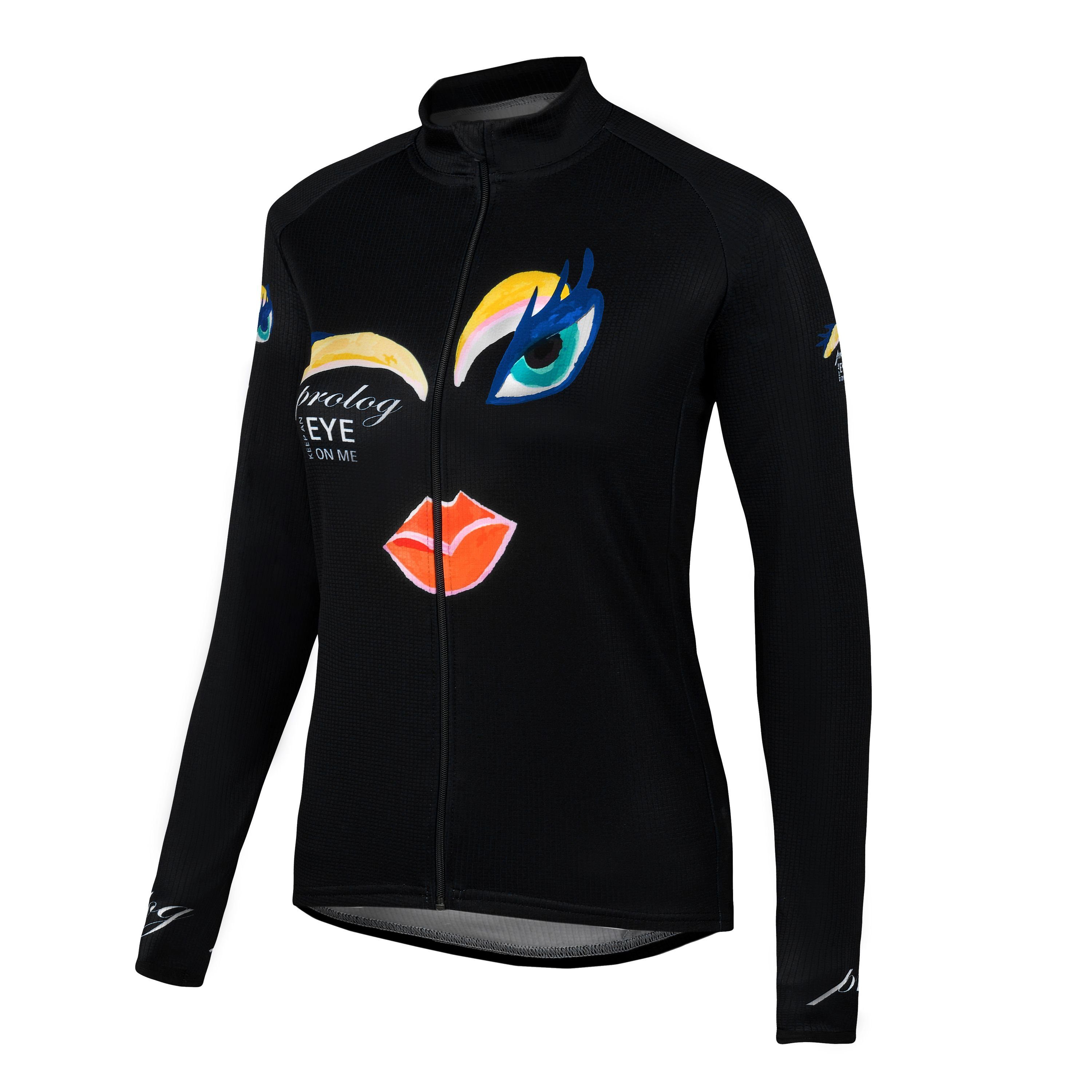 Damen langarm Fahrradtrikot in schwarz, aus einer innen angerauten Thermoflauschfaser. 3 Rückentaschen, atmungsaktiv und elastisch mit Anti-Statik-Finish. Durchgehender Reißverschluss und tailliert, auch als Trainingsjacke tragbar.